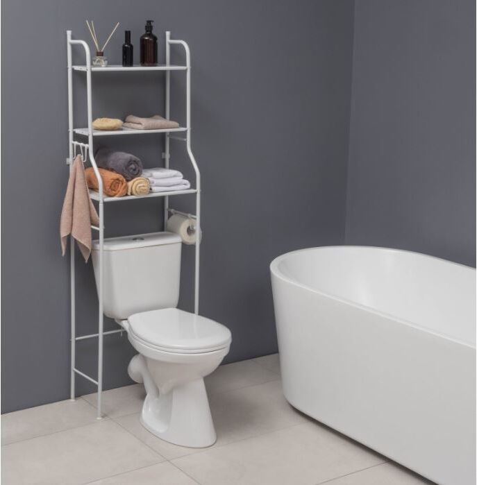 Как разместить всё необходимое в небольшой ванной? Металлическая стойка поможет расположить всё необходимое. Благодаря удобной конструкции можно рационально использовать свободное пространство над унитазом или стиральной машинкой. На стеллаже можно с лёгкостью разместить полотенца, бытовую химию и средства гигиены. Практичный и функциональный, стеллаж дополнит любой интерьер.