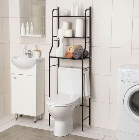 Как разместить всё необходимое в небольшой ванной? Металлическая стойка поможет расположить всё необходимое. Благодаря удобной конструкции можно рационально использовать свободное пространство над унитазом или стиральной машинкой. На стеллаже можно с лёгкостью разместить полотенца, бытовую химию и средства гигиены. Практичный и функциональный, стеллаж дополнит любой интерьер.