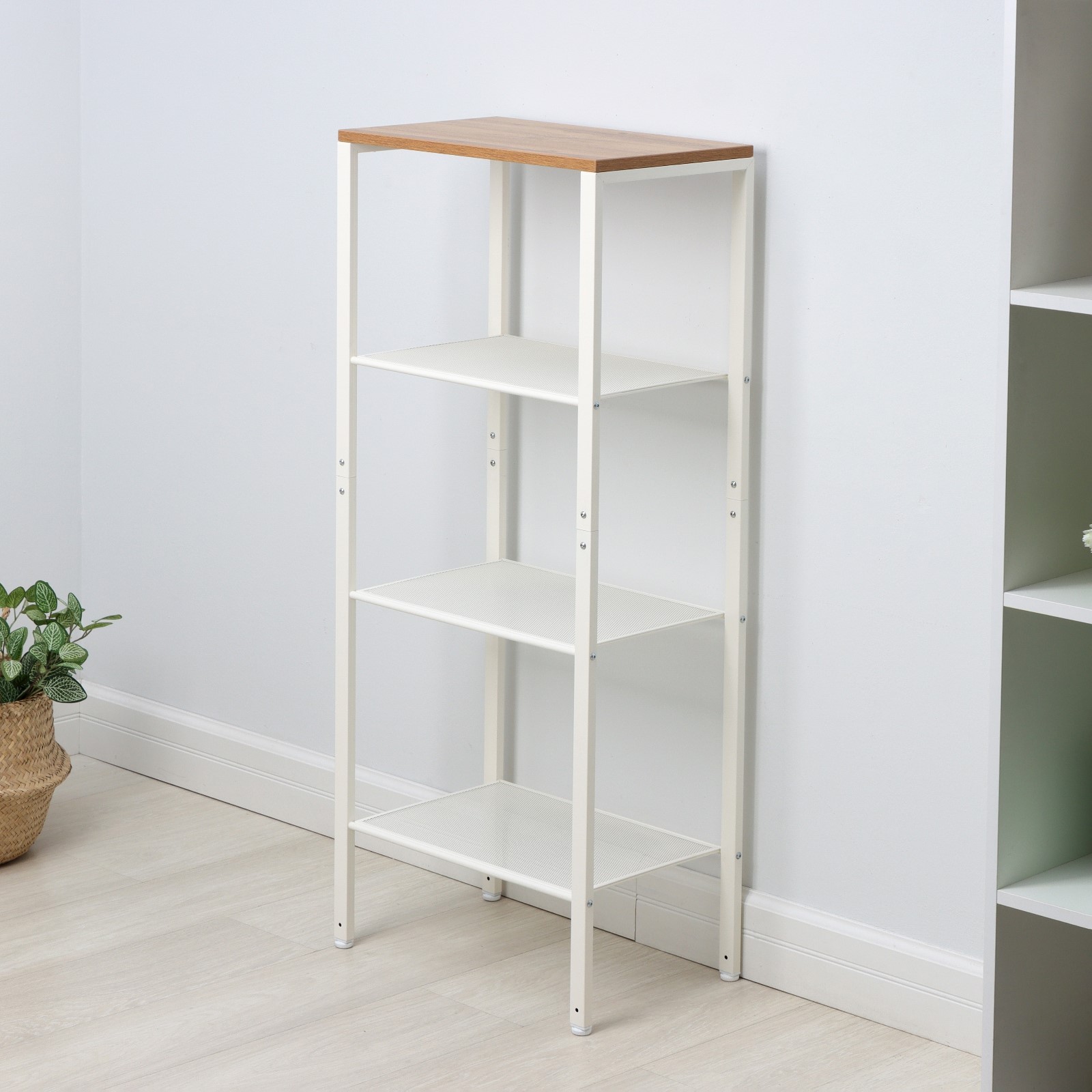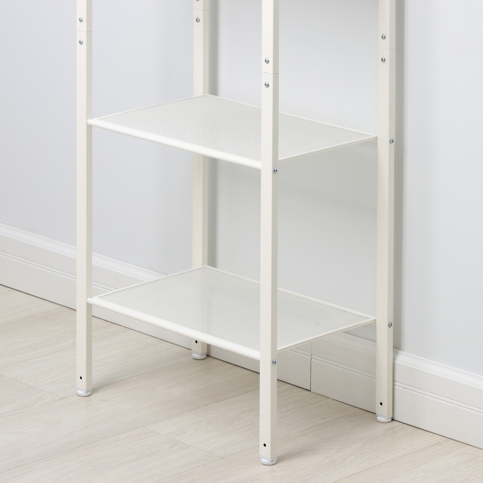 Стеллаж имеет регулируемые ножки - будет устойчивым даже если у вас неровный пол