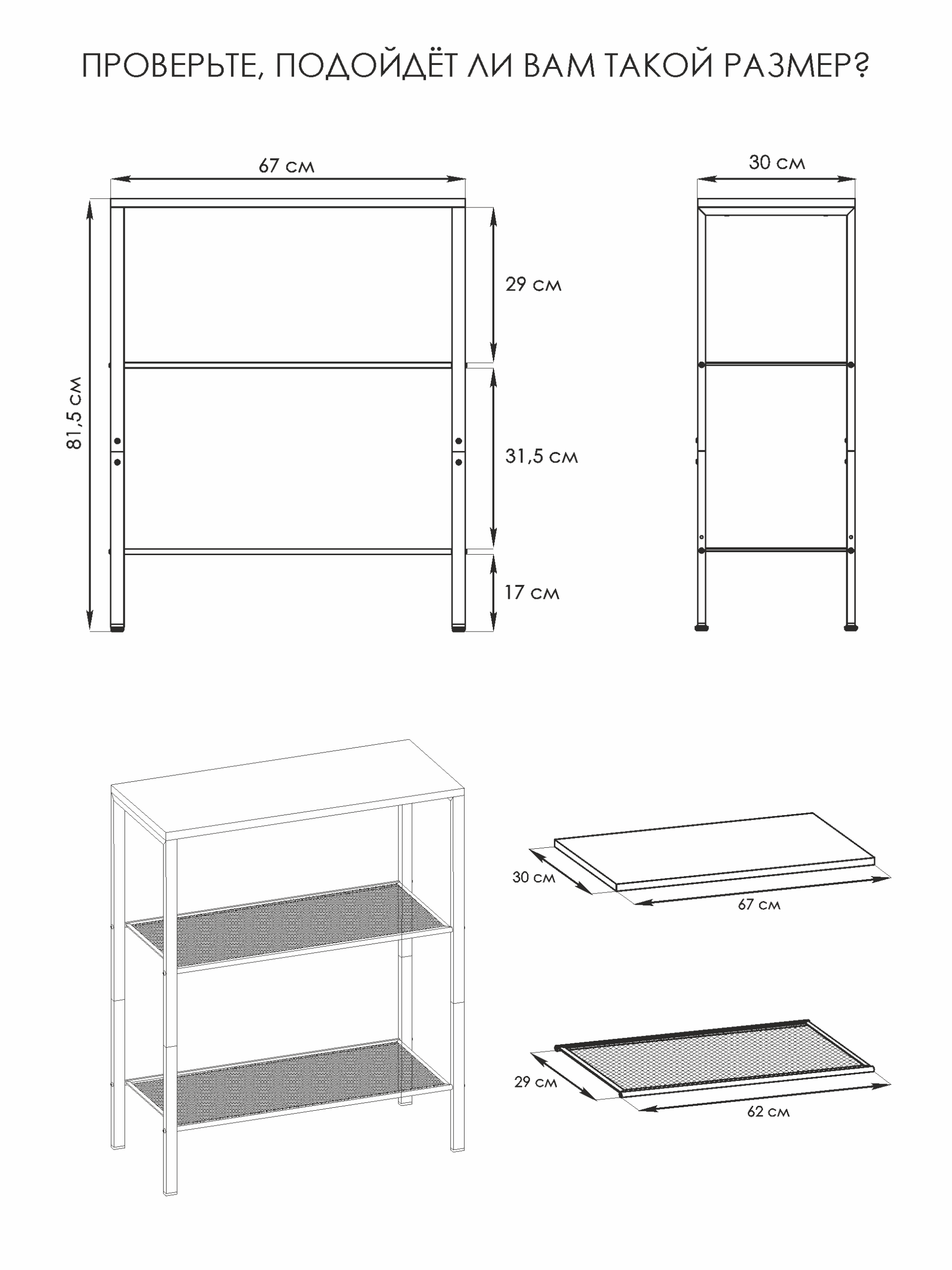 Стеллаж имеет регулируемые ножки - будет устойчивым даже если у вас неровный пол