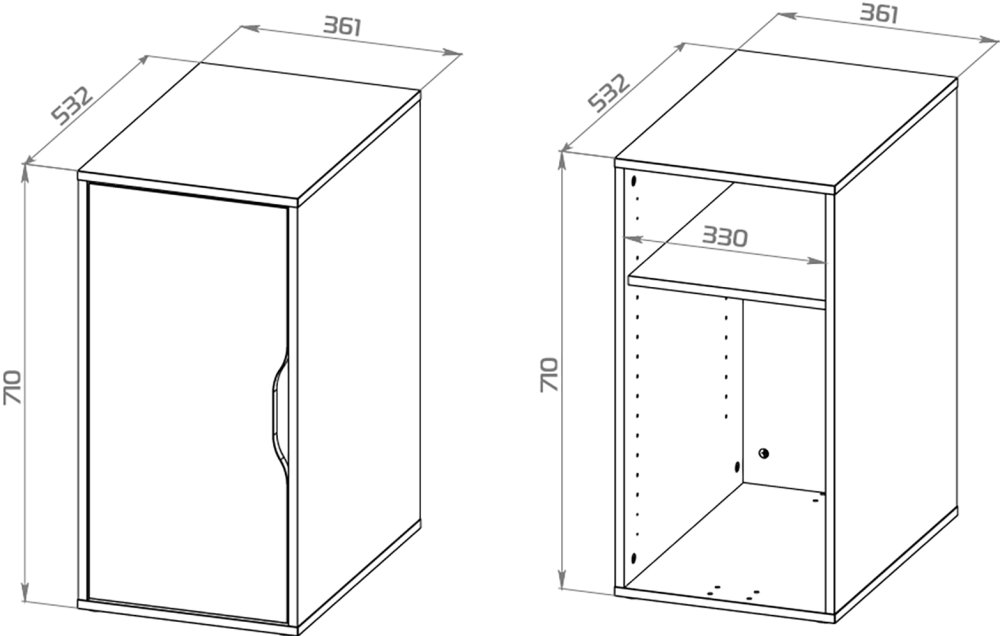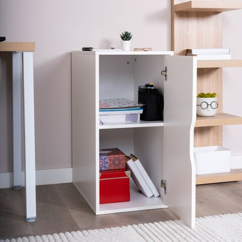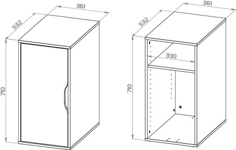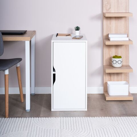 Тумба оснащена дверцей, и регулируемой полкой внутри, что позволяет с удобством разместить что необходимо – папки, книги, канцелярские принадлежности.