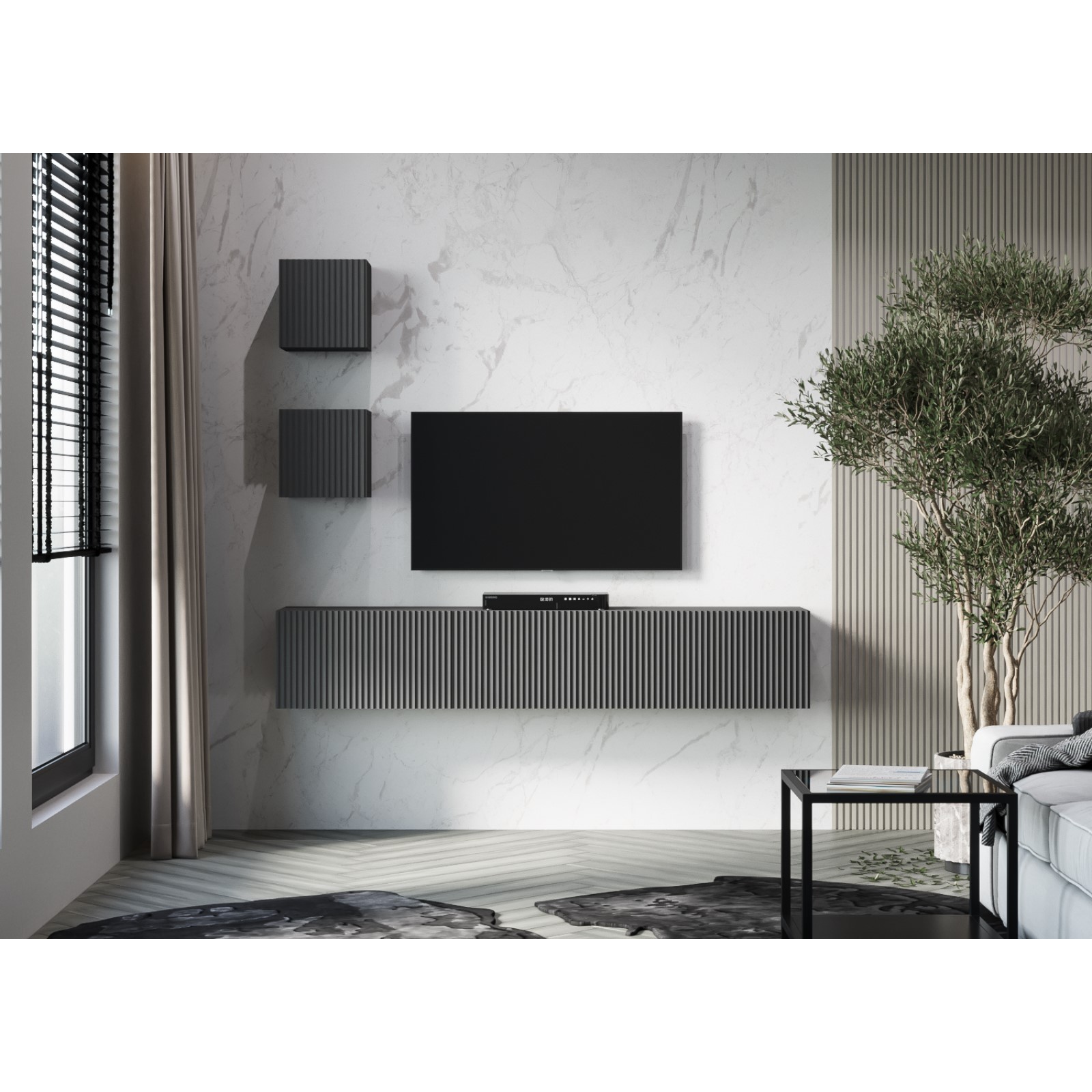 Фасадные дверцы открывается с помощью нажатия на фасад. Установлен механизм Push to Open.