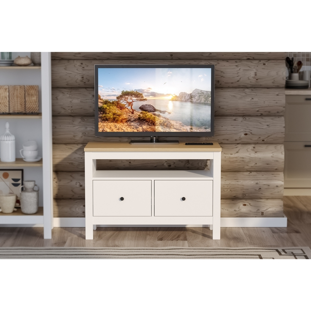 САГА, тумба под ТВ, 2 ящика, 91х62 см, белый/ясень, М2
