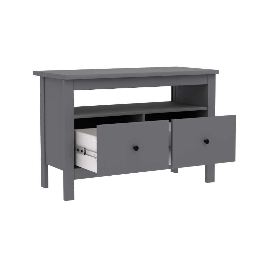Тумба САГА, 2 ящика, 91х62 см — это стильное и функциональное решение для организации медиацентра, которое идеально сочетает в себе практичность, элегантный дизайн и продуманные детали. Её ключевая особенность — открытая полка без задней стенки, разработанная специально для размещения игровых консолей, таких как Play Station, или другой техники, требующей эффективной вентиляции. Эта полка также позволяет удобно вывести кабели, сохраняя пространство аккуратным и организованным.