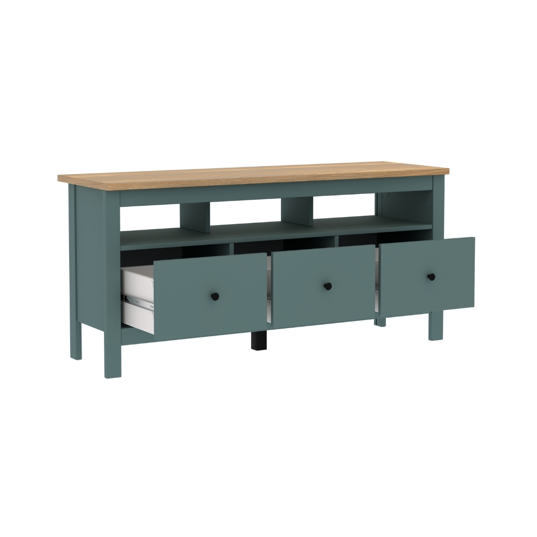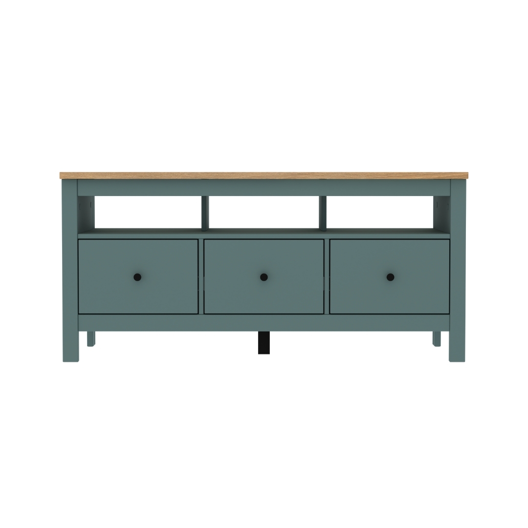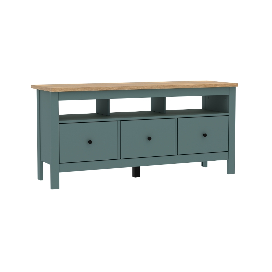 САГА, тумба под ТВ, 3 ящика, 131х62 см, бирюзовый/ясень, М2
