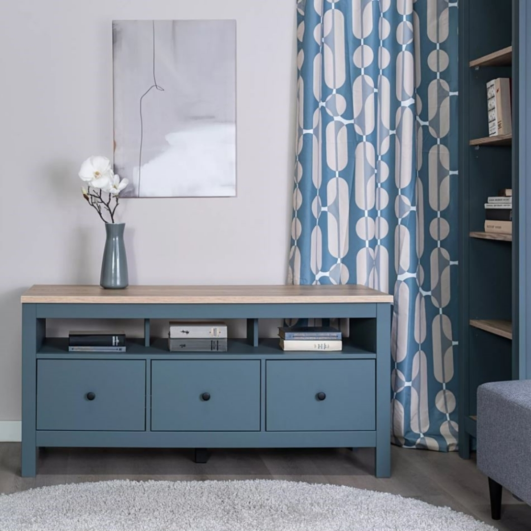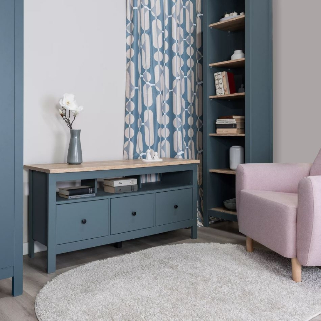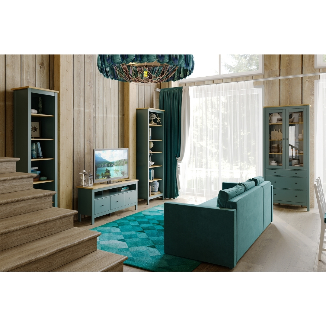 САГА, тумба под ТВ, 3 ящика, 131х62 см, бирюзовый/ясень, М2