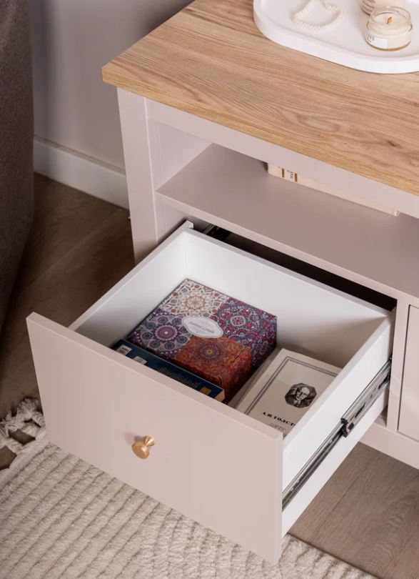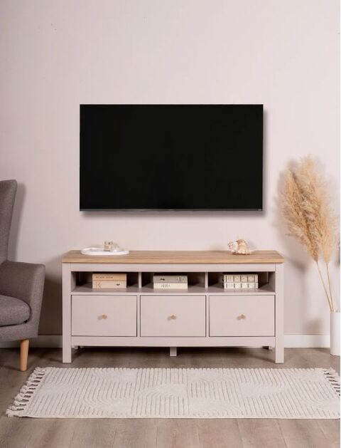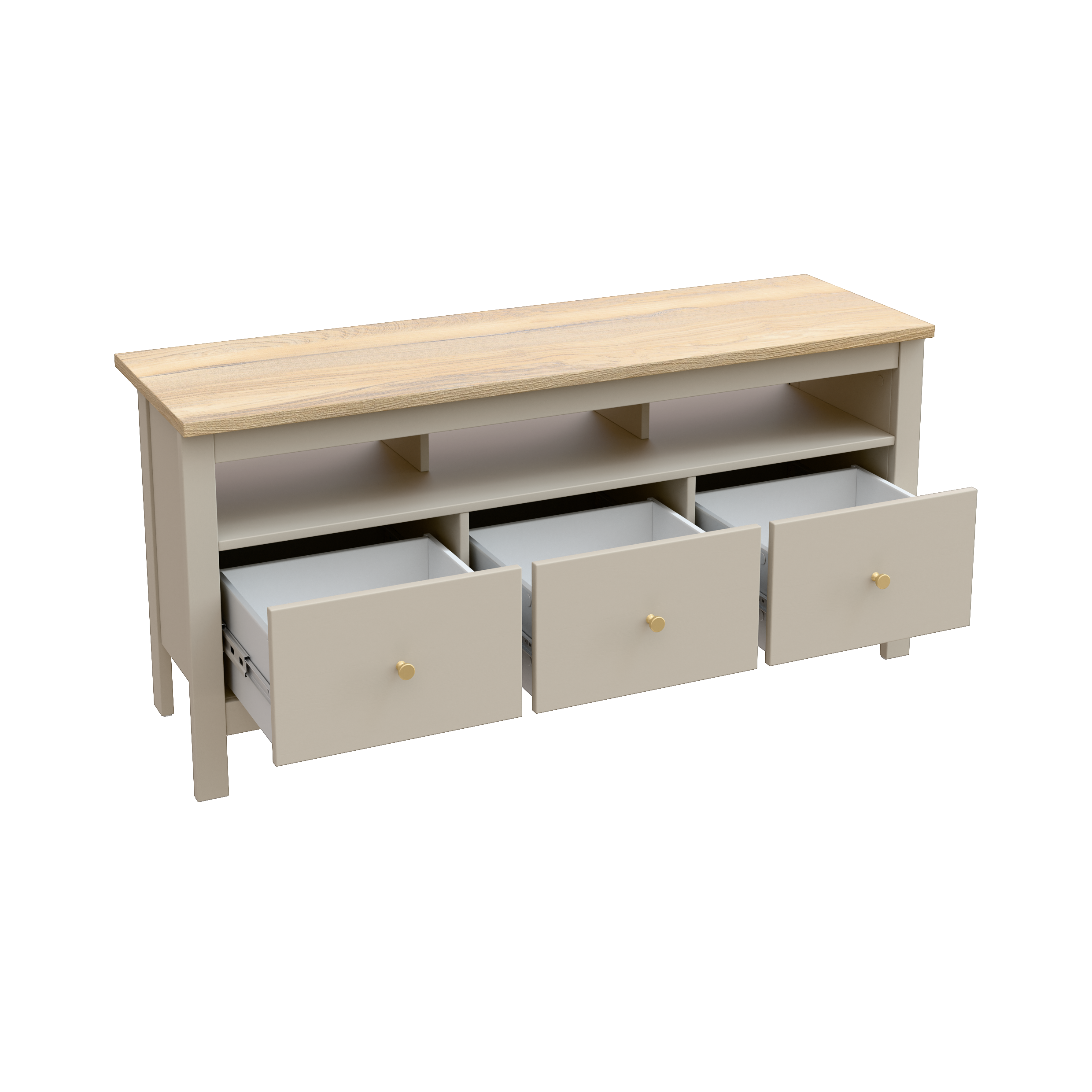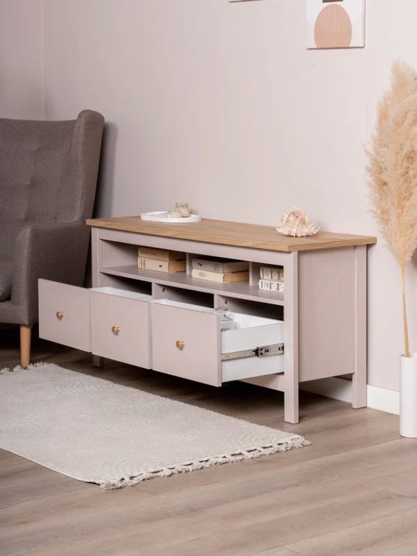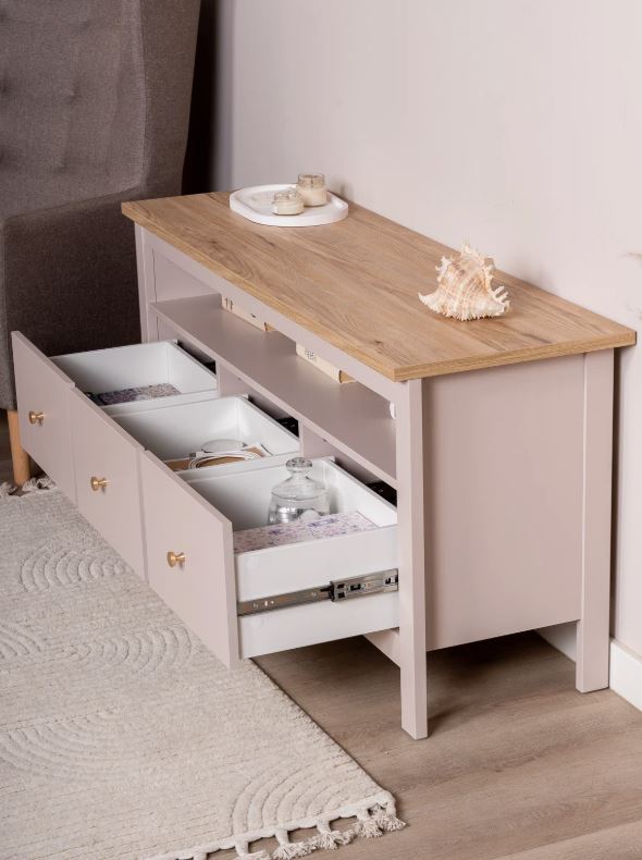 Тумба оснащена тремя просторными ящиками, которые идеально подходят для хранения самых разных вещей: аксессуаров, важных мелочей, дисков или даже постельного белья. Ящики оборудованы современными направляющими полного выдвижения с доводчиками, которые обеспечивают плавное, бесшумное и легкое открывание, добавляя комфорта в повседневное использование.