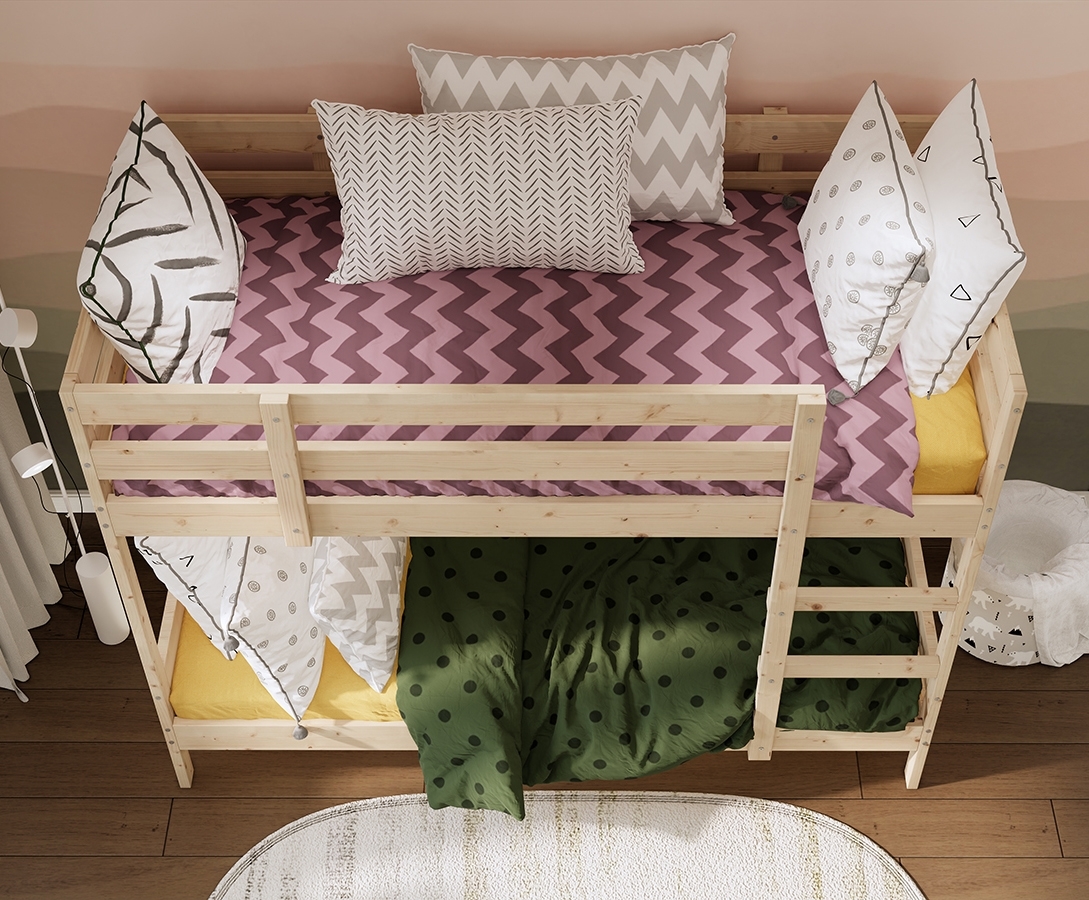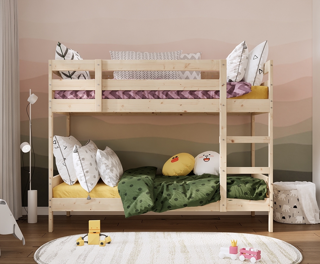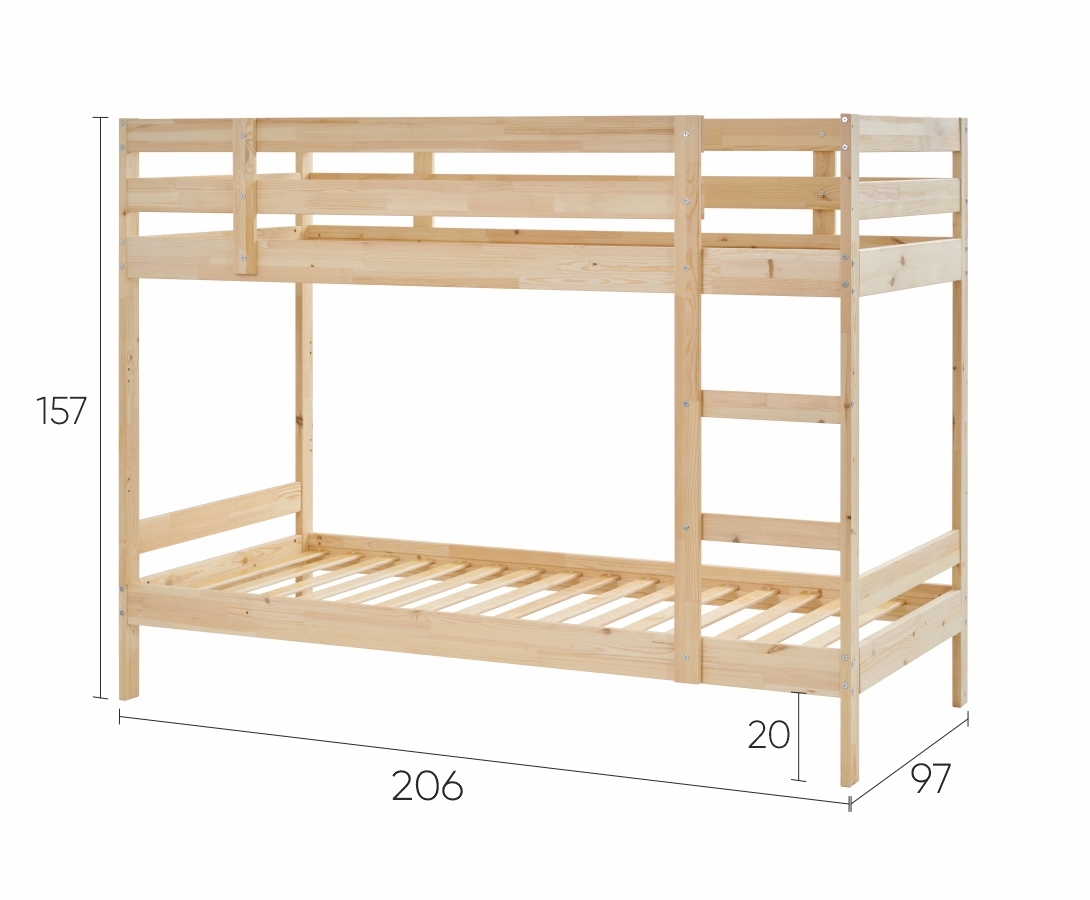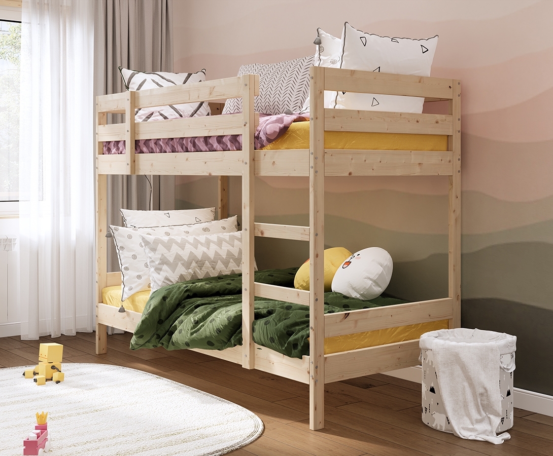 ОШ / МИДАЛ, двухъярусная кровать из массива сосны, 90х200 см, натуральный