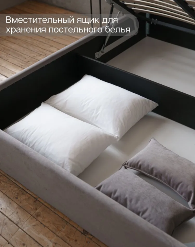 Кровать KELLY — это идеальное сочетание стиля, комфорта и функциональности. Оснащенная современным подъемным механизмом, она позволяет легко и удобно получать доступ к вместительному ящику для хранения, что делает её отличным выбором для тех, кто ценит порядок и практичность в спальне.