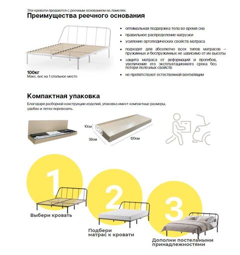 Эта кровать продается с реечным основанием на ламелях. Основания такого типа имеют ряд преимуществ: