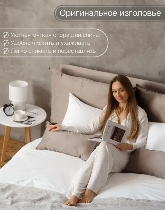 - Мягкие подушки на изголовье создают дополнительный комфорт при чтении или просмотре фильмов