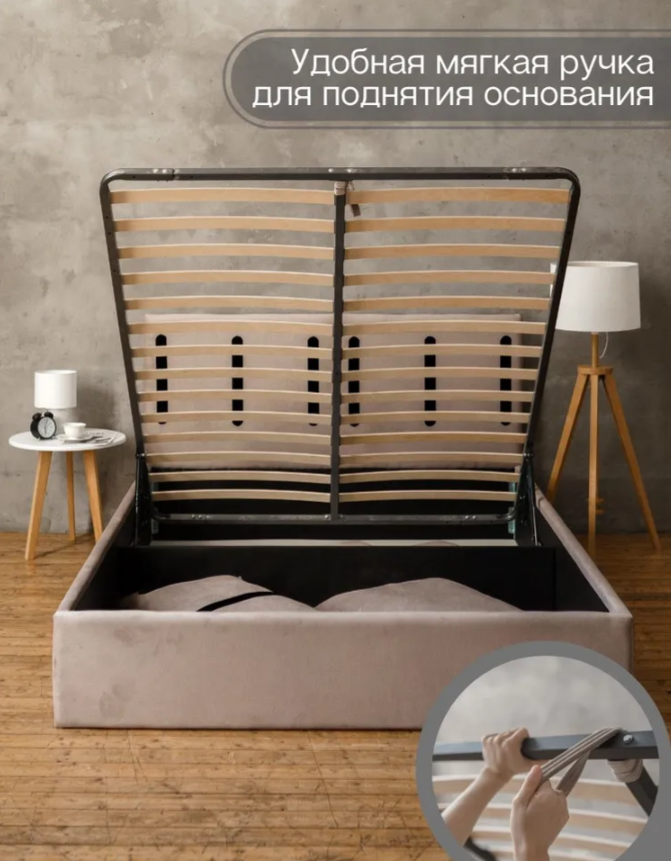 - Подъемный механизм обеспечивает легкий доступ к вместительному ящику для белья