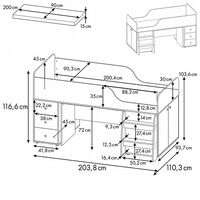 КИДАС, кровать-чердак с письменным столом и шкафом, белый, 90х200см, М8