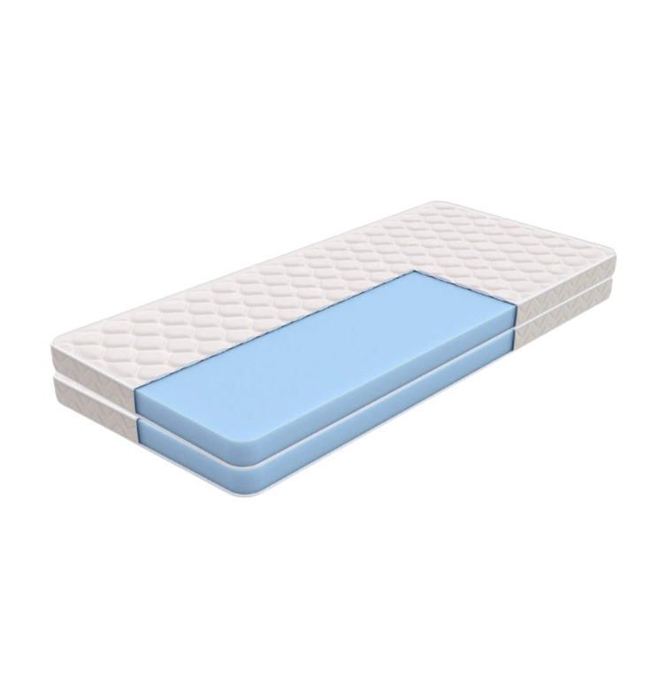 Беспружинный матрас, представляет собой блок высокоэластичного пенополиуретана — экологически безопасного материала, отличающегося высокой степенью износостойкости, комфортной жесткостью, практичностью, не вызывает аллергии, обеспечивает хорошую поддержку позвоночника во время сна и отдыха, дарит расслабление.