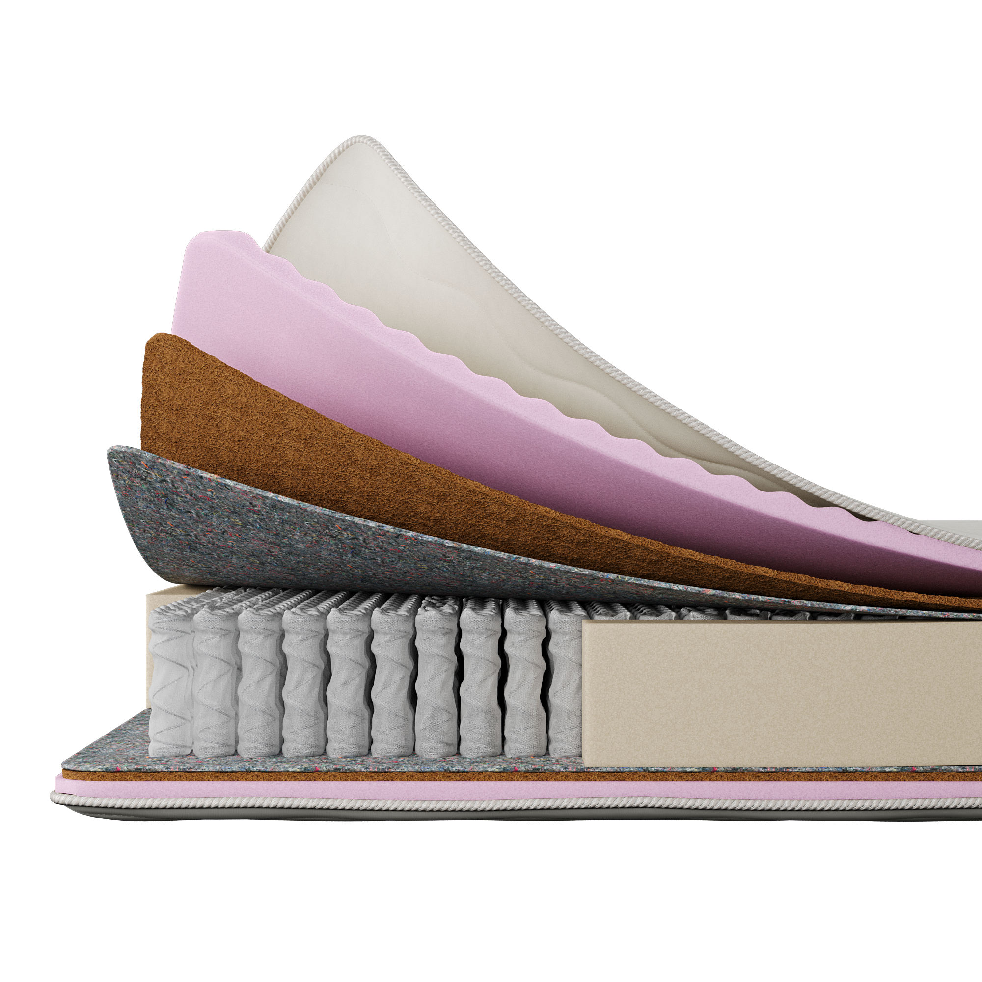 Комфортный блок пружин обеспечивает оптимальную поддержку для вашего тела, а комбинация массажной пены Space foam и кокосовой койры добавляет дополнительную жесткость и при этом, создает ощущение полного расслабления.