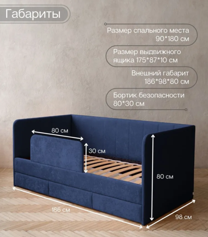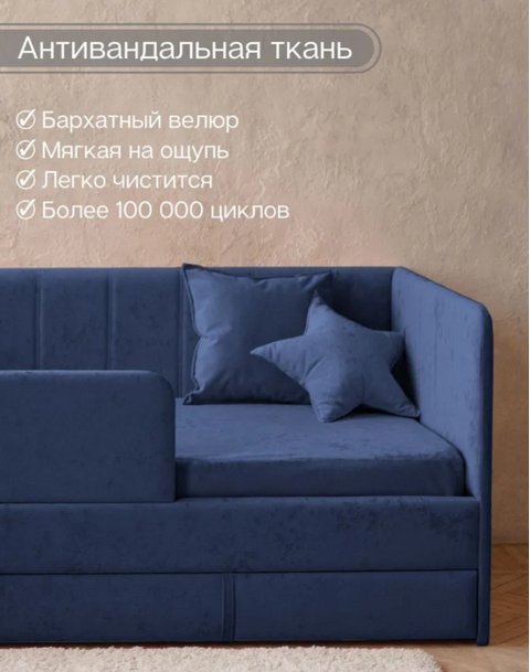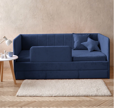 ДРИМЛАЙН, детский диван-кровать с матрасом и бортиком, 90х180 см, синий, М2