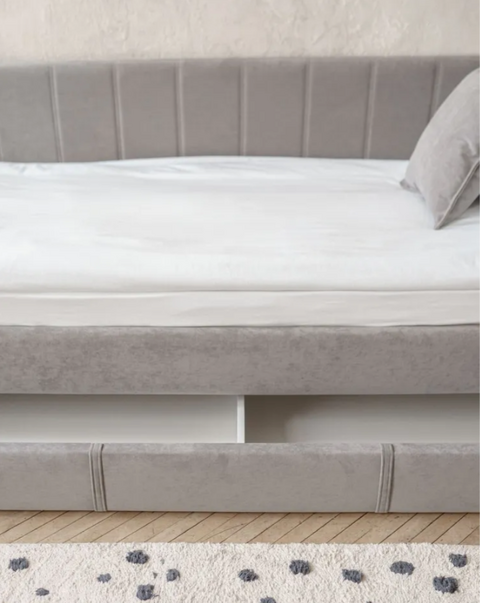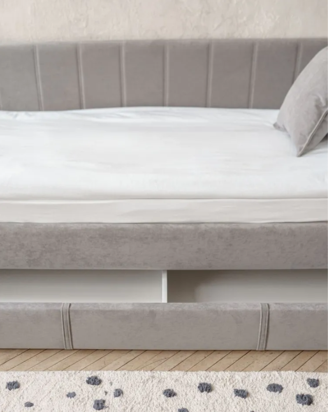 Диван COLINS собирается Г-образной формы на любую сторону, что делает данную модель кровати универсальной для любого пространства.