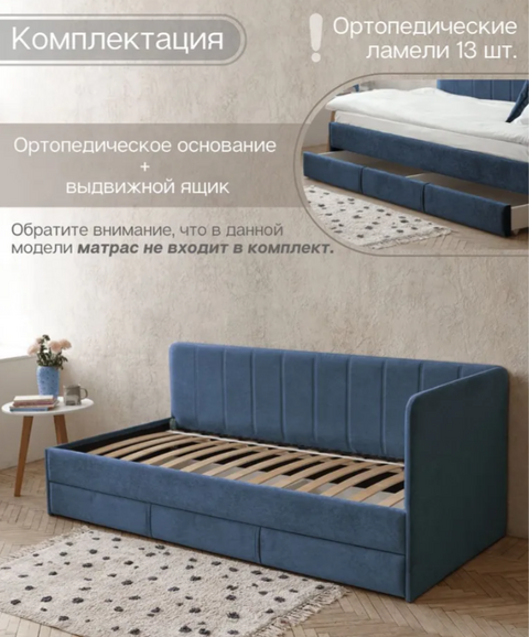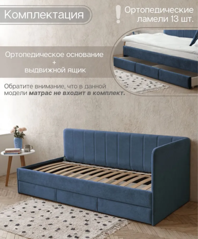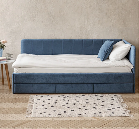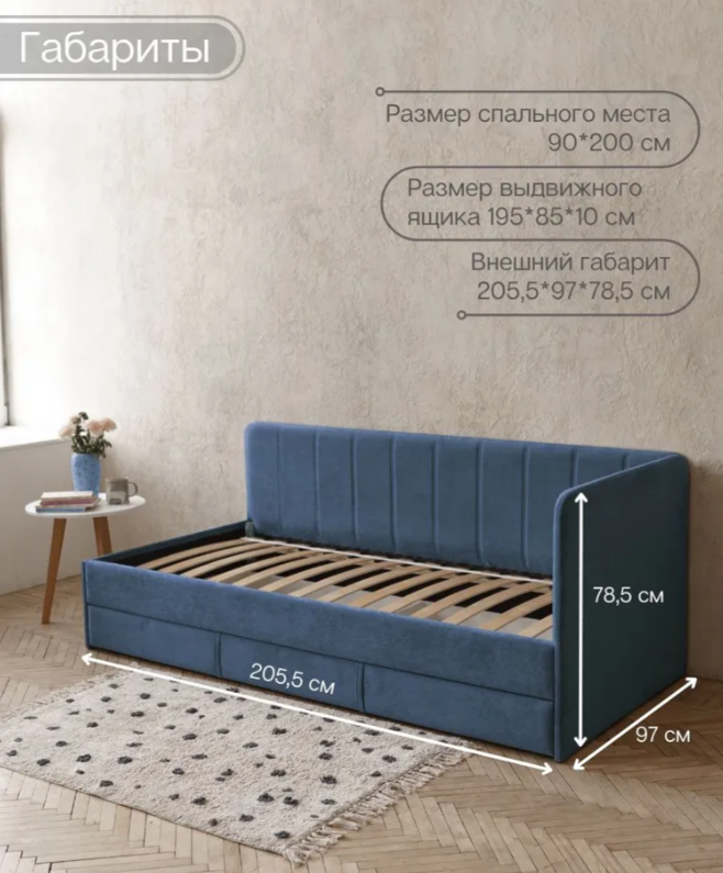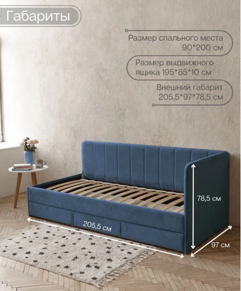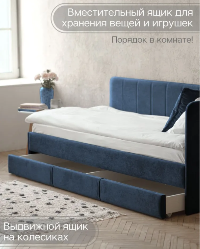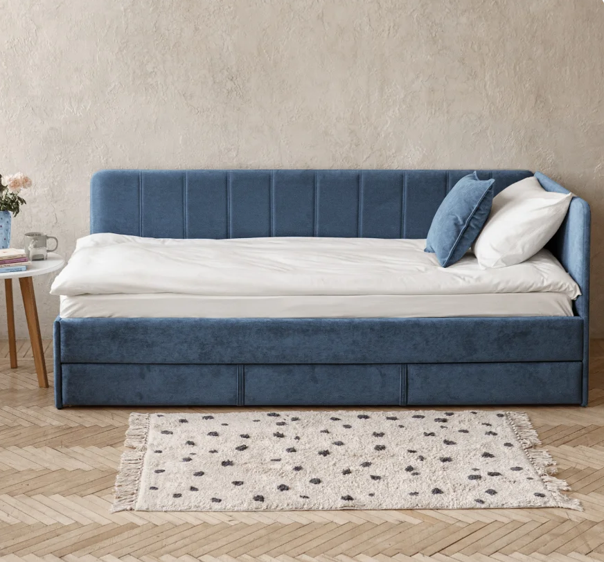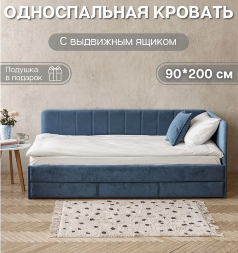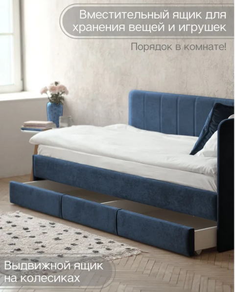 КОЛИНС, односпальная кровать, выдвижные ящики, 90х200 см, синий, М2