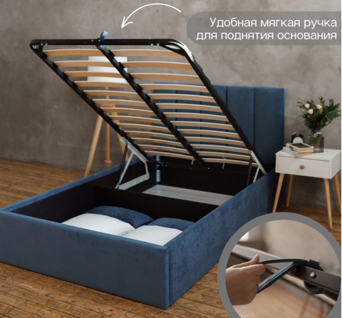 Односпальная кровать с ортопедическим основанием из бархатного велюра с ящиком для хранения белья и подъемным механизмом - идеальный выбор для тех, кто ценит комфорт, стиль и функциональность в своей спальне