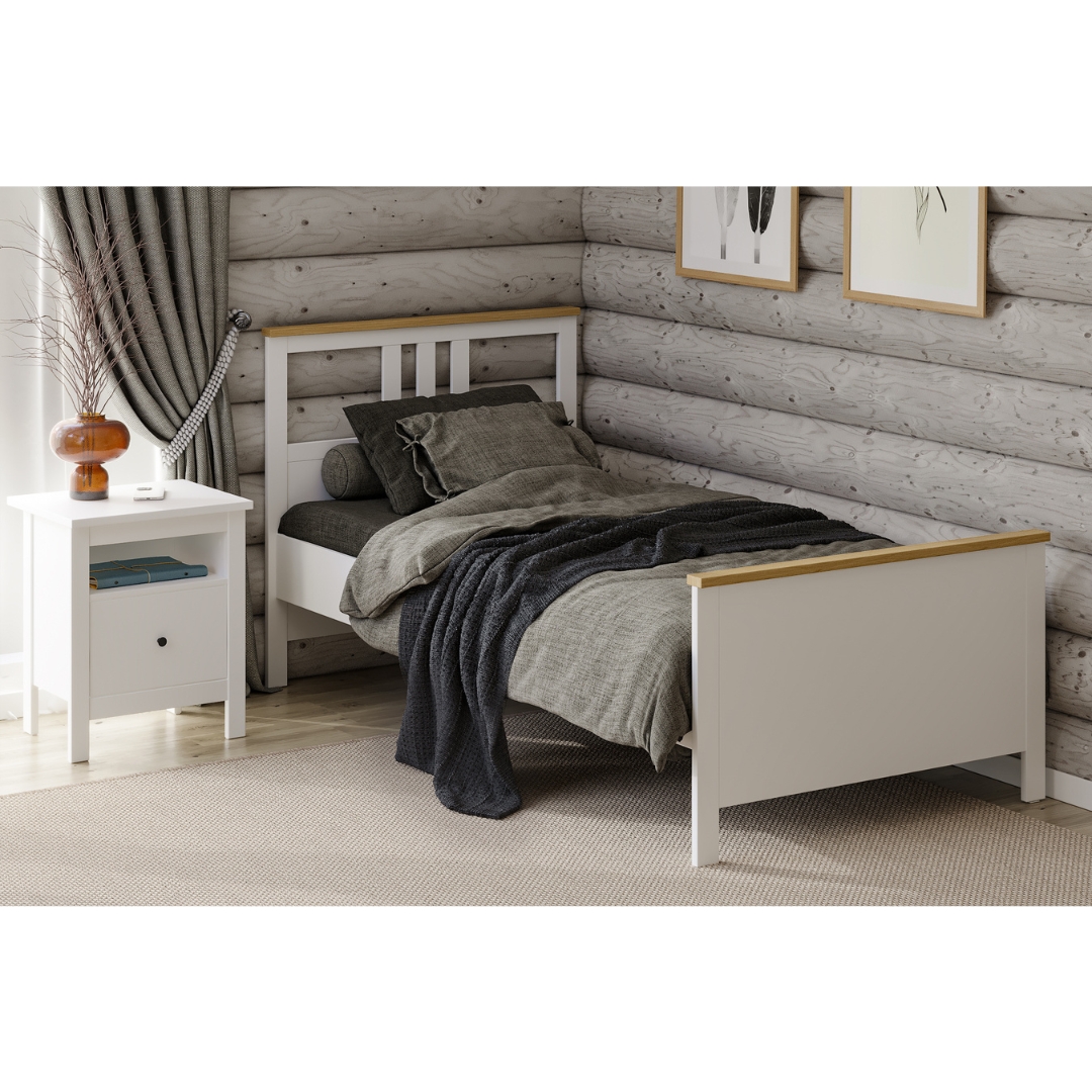 САГА, кровать односпальная, 90х200 см, белый/ясень, М3