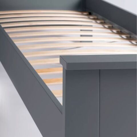 Оснащена ортопедическим реечным дном, которое обеспечивает оптимальную поддержку позвоночника во время сна. Опорные элементы изготовлены из прочного МДФ, что обеспечивает устойчивость и надежность конструкции на долгие годы.