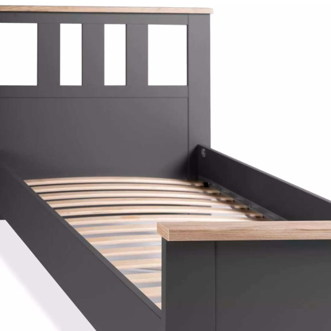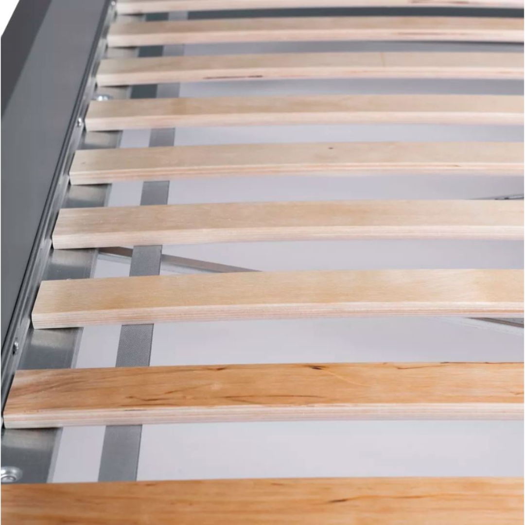 Оснащена ортопедическим реечным дном, которое обеспечивает оптимальную поддержку позвоночника во время сна. Опорные элементы изготовлены из прочного МДФ, что обеспечивает устойчивость и надежность конструкции на долгие годы.