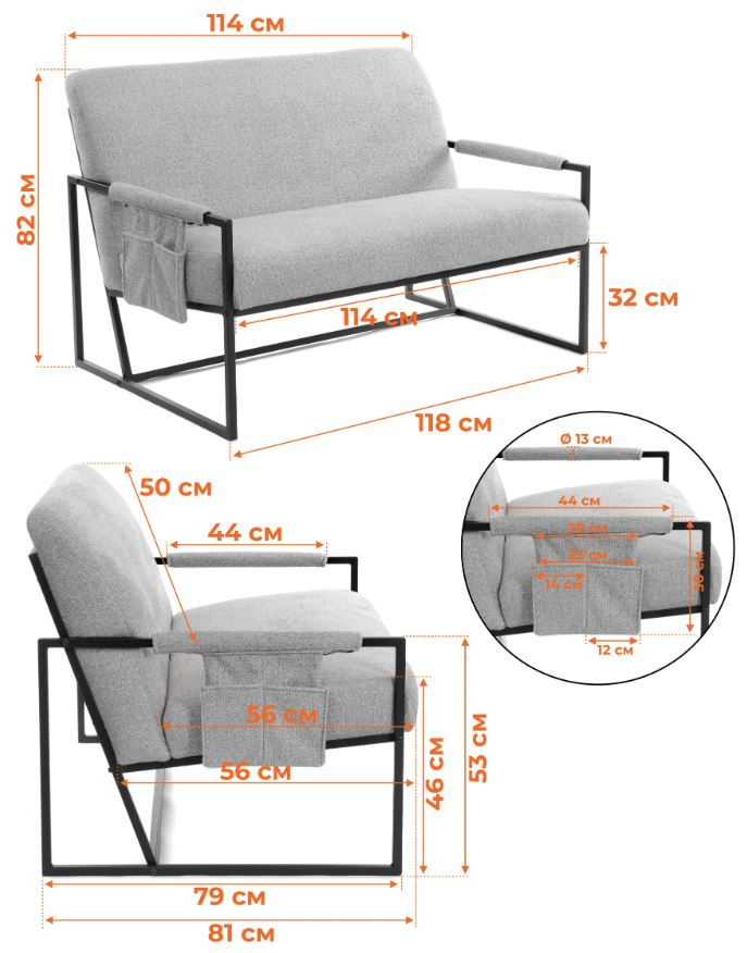Наполнитель сиденья и спинки состоит из независимого пружинного блока + ППУ высокой плотности это даёт возможность комфортной посадки и быстро восстанавливается. Специально разработанный угол наклона спинки подходит для любой фигуры и обеспечивает максимальный комфорт. Подлокотник с удобным двойным карманом который гармонично дополняет диван.