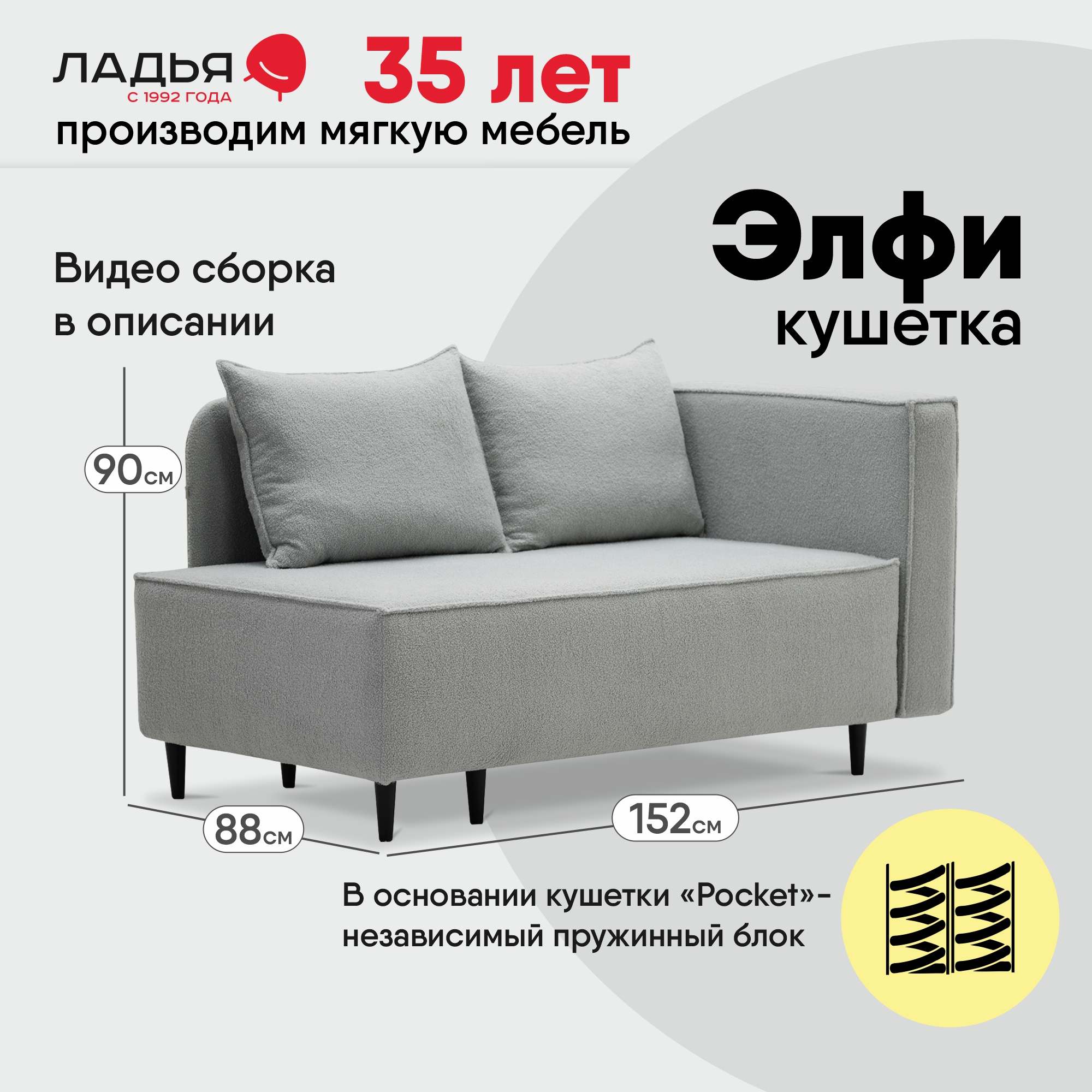 ЭЛФИ - компактная и функциональная кушетка с широким спальным местом. Отлично разместится в небольших помещениях. Современный дизайн "швы наружу".