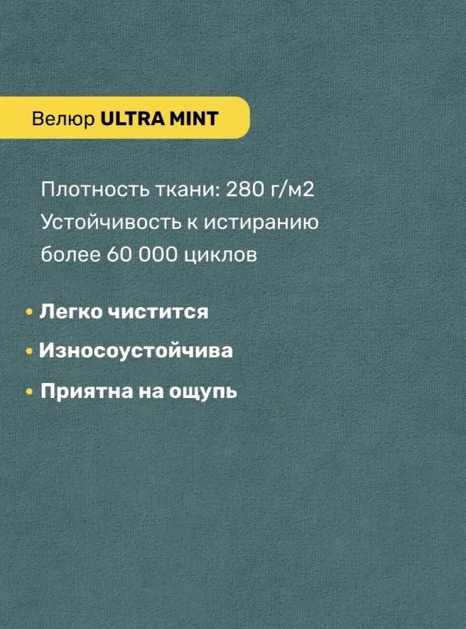Обивка устойчива к истиранию, по тесту Мартиндейла более 60 000 циклов, это обеспечит долгий срок службы и простой уход. Тактильная поверхность с супермягким ворсом сделает ваш отдых незабываемым.