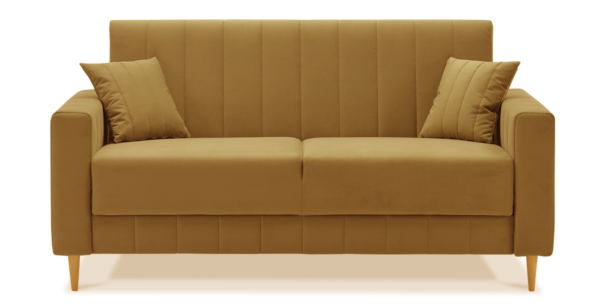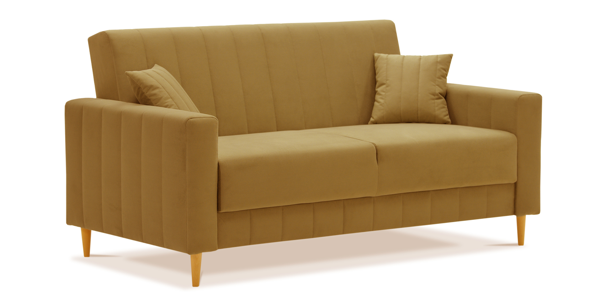 Современный раскладной диван на высоких деревянных ножках. Компактные габаритные размеры позволят разместить его в небольших помещениях. Прямые формы и вертикальная стежка придают дивану сдержанность и элегантность.