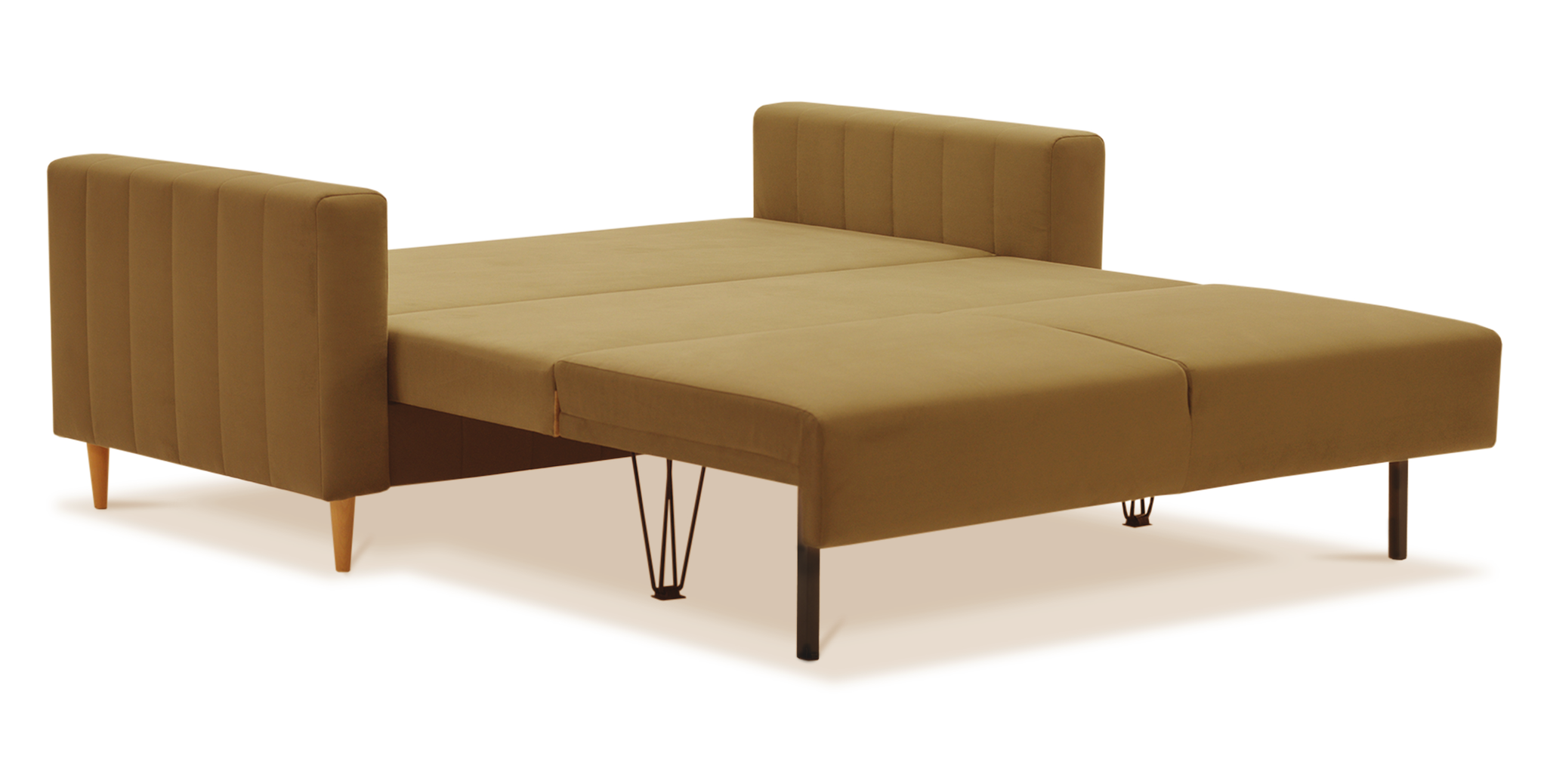 3. Придерживая диван на весу, выдвинуть металлические опоры и опустить получившуюся конструкцию на пол.