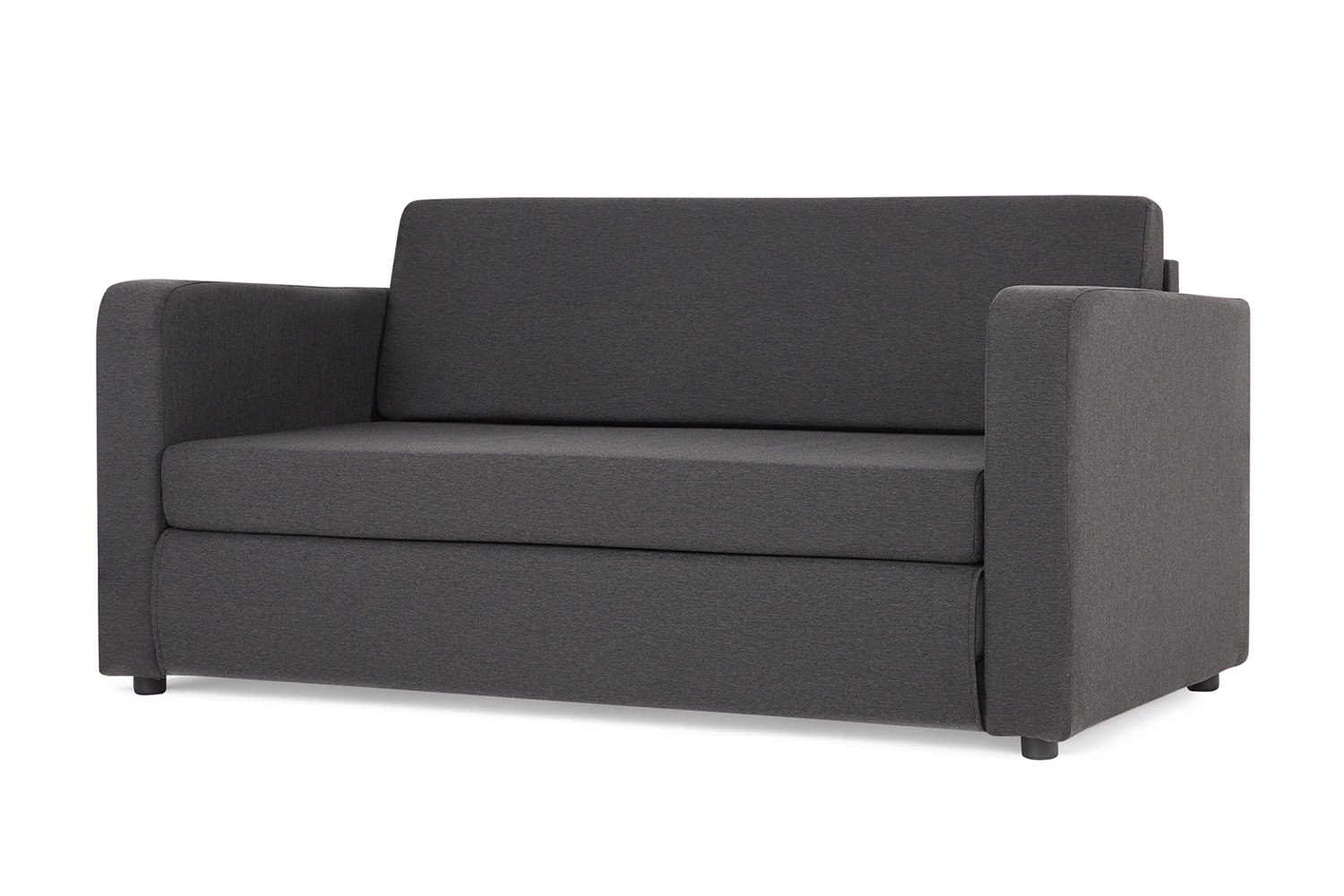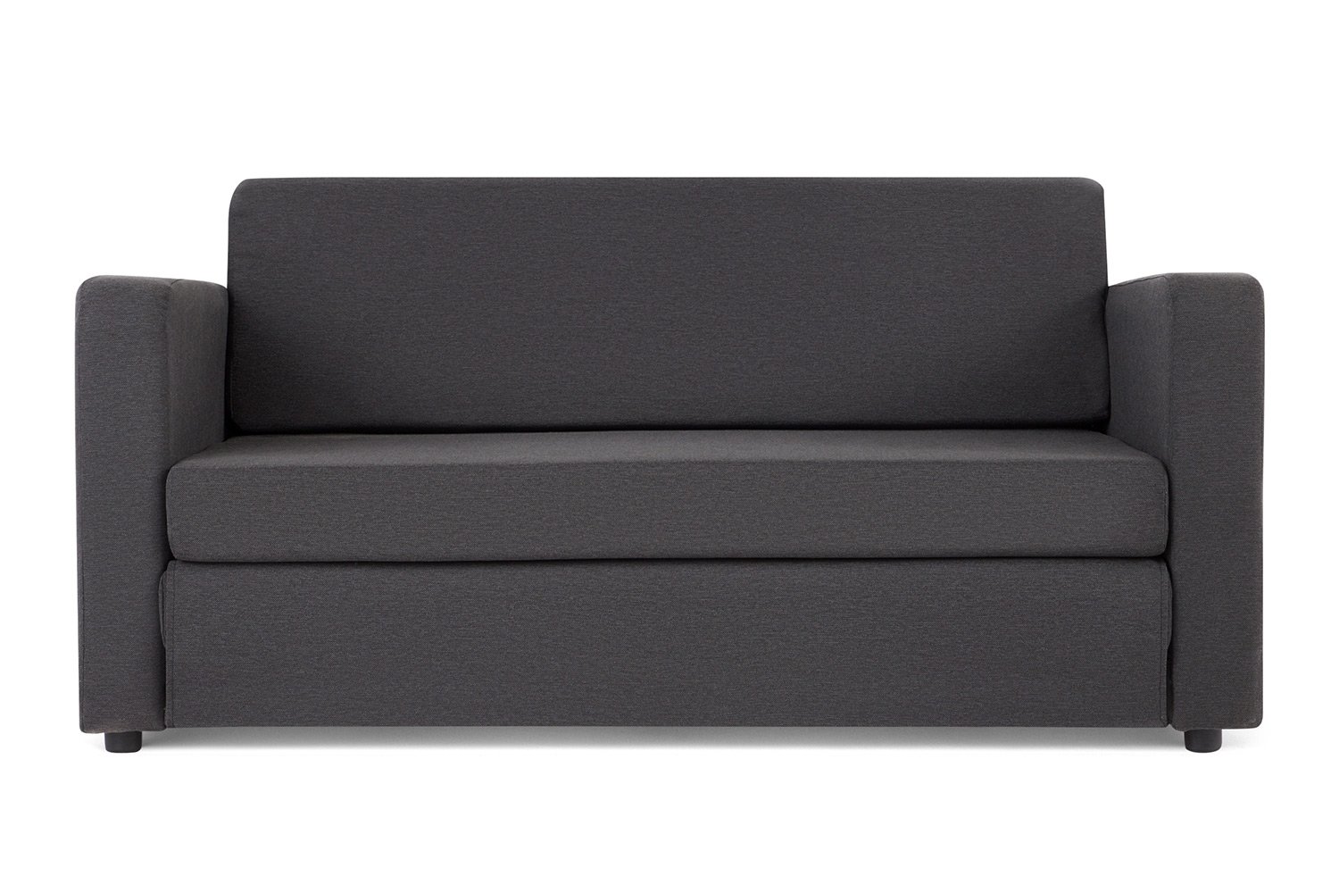 Прямой диван Куба – практичное решение для небольшой гостиной, студии или кухни. При своих скромных размерах он трансформируется в полноценное двуспальное место. Поскольку подушки модели раскладываются на пол, модель не предназначена для ежедневного использования, но удобна для размещения припозднившихся гостей. Тканевая обивка легко поддается чистке. Прикручивающиеся ножки выполнены из прочного пластика