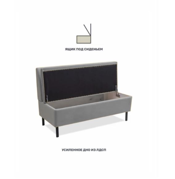 ОЛИВЕР, диван кухонный с ящиком, прямой, 120 см, велюр, дымчатый серый