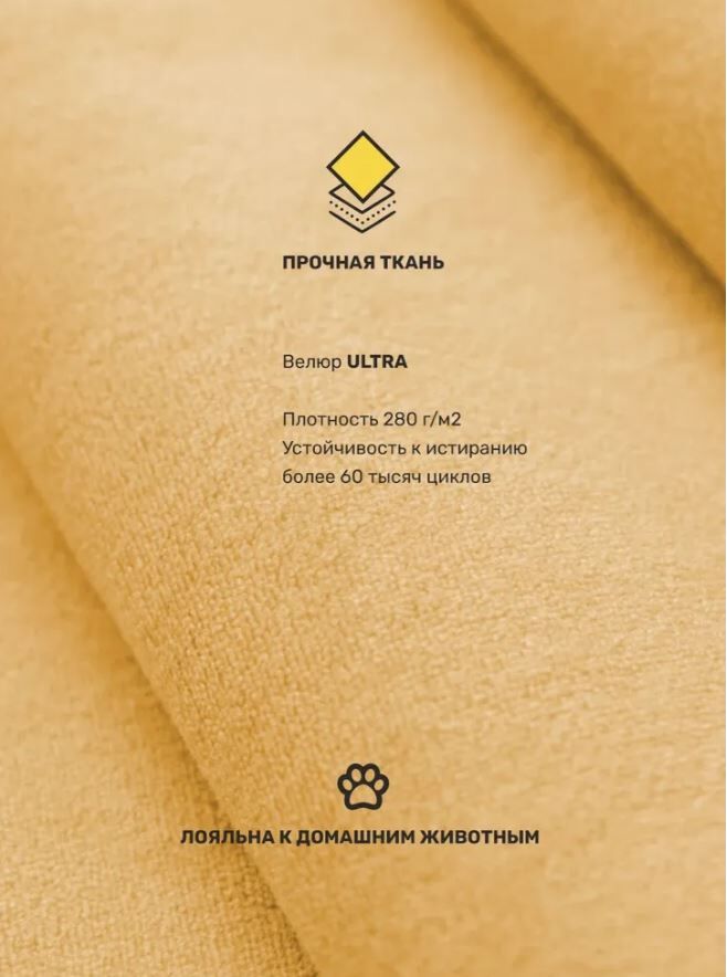 Диван Оливер выполнен полностью в одной ткани. Велюр Ultra проверен временем, прочен и легко чистится