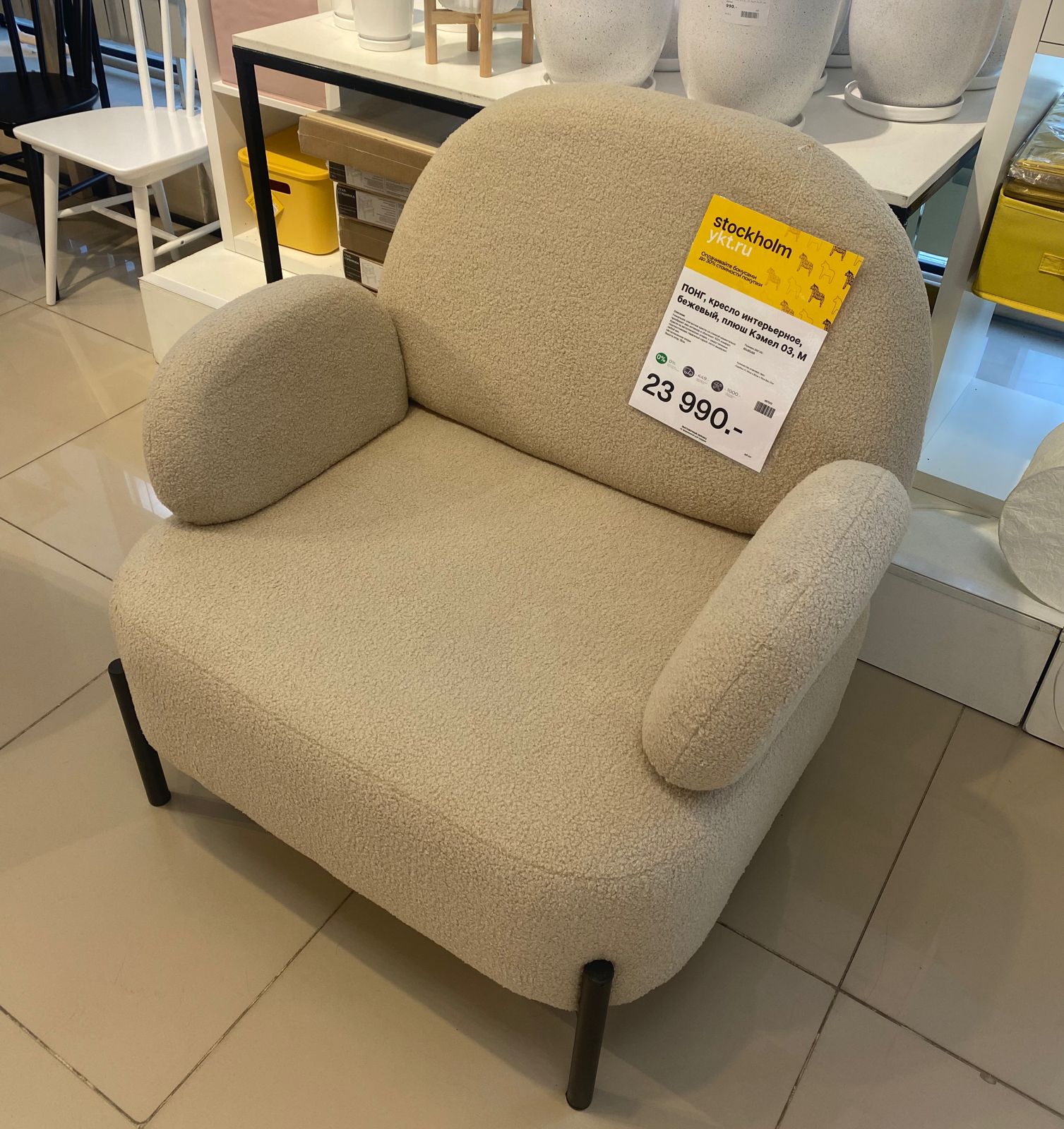 ПОНГ, диван интерьерный, бежевый, плюш Кэмел 03