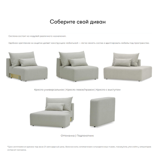 Механизм трансформации модульной системы - "еврокнижка". Надежный и долговечный. Позволяет трансформировать диван в положение "кровать".