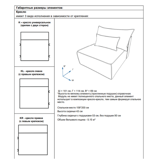 Ш = 146 см, Г = 114 см, В* = 69 см
