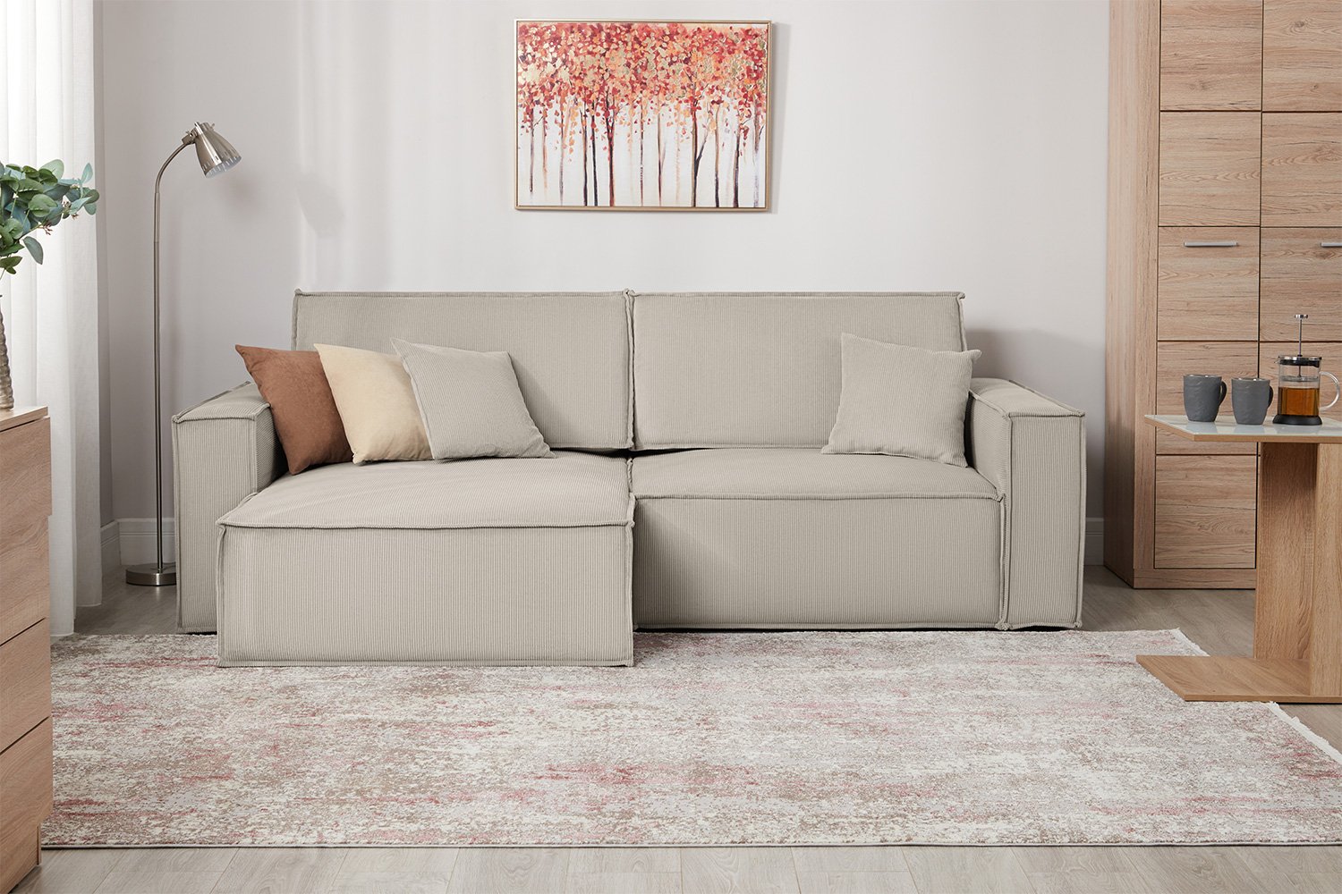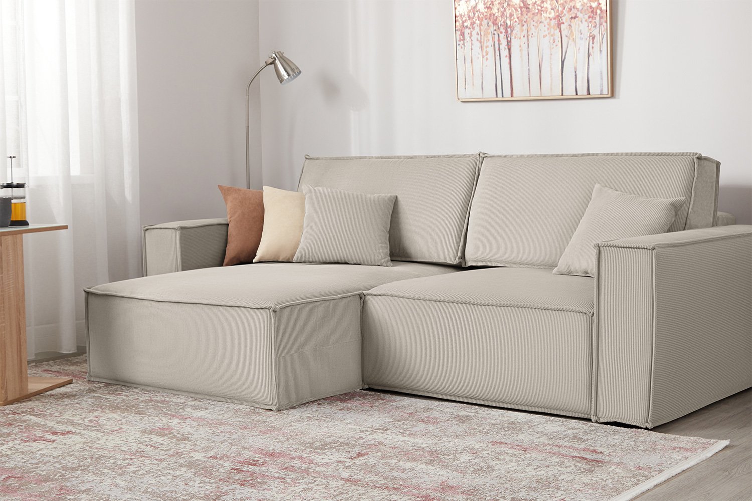 СИДНЕЙ, угловой диван-кровать, велюр страйп, бежевый, М5