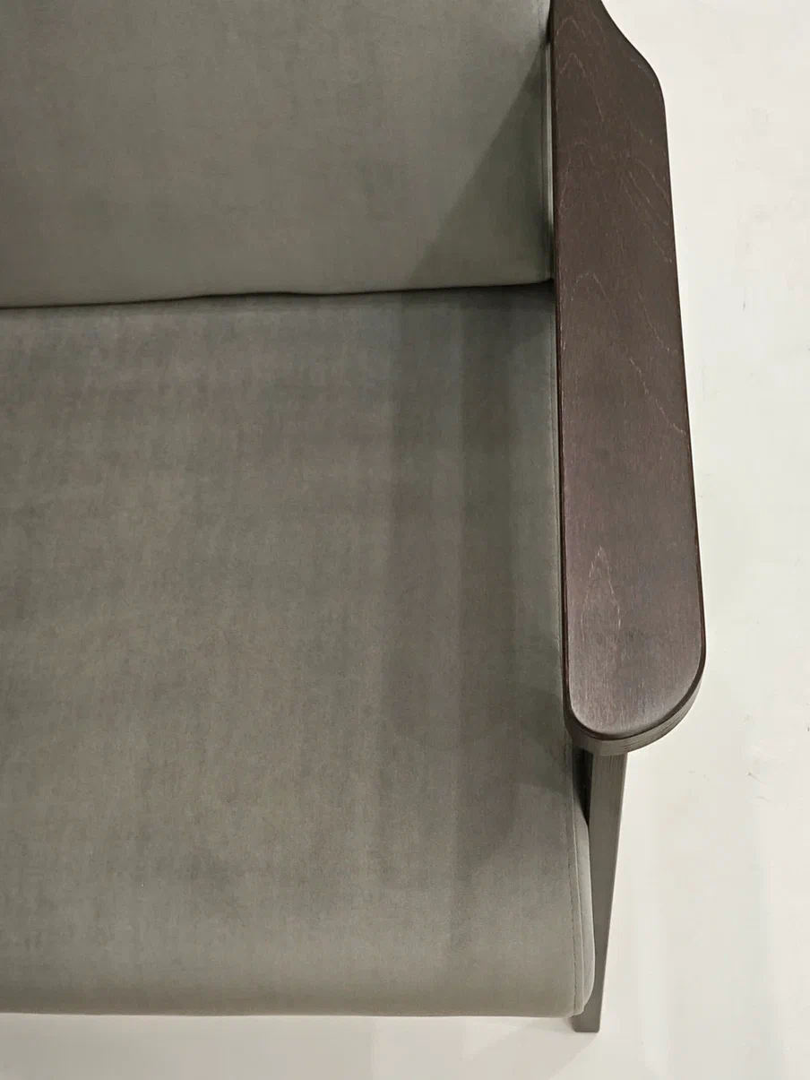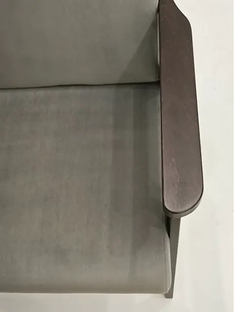 Выполнена в нескольких цветах каркаса и в двух вариантах обивки: велюр или рогожка. Обе ткани устойчивы к выгоранию цвета и просты в уходе