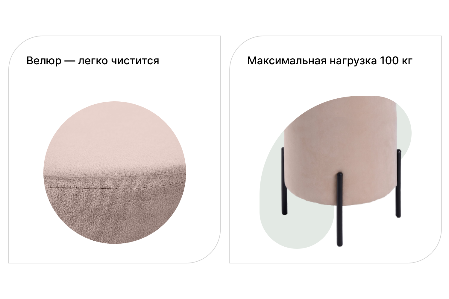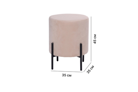 Пуф сочетает современный дизайн с практичностью для повседневных задач. Обивка из велюра в бежевом цвете создает мягкое визуальное впечатление и приятна на ощупь. Сеталлические элементы модели добавляют ей акцент. Внутри используется наполнитель, который поддерживает форму и обеспечивает комфорт при использовании.