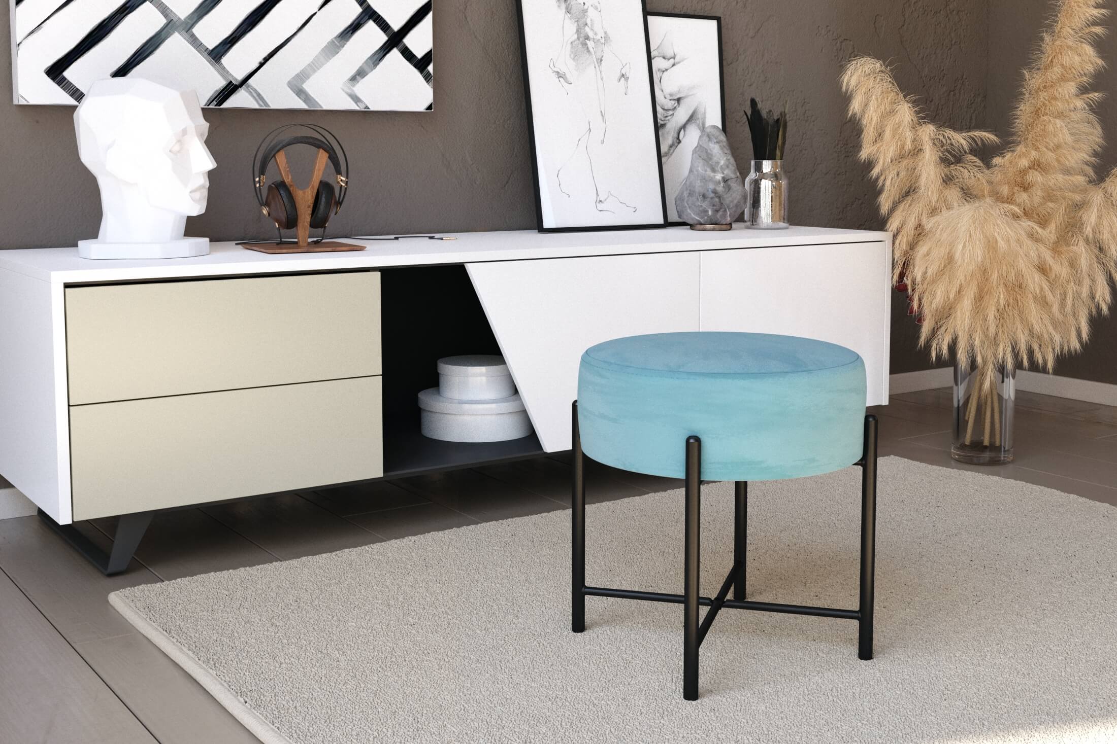 Изящная банкетка цилиндрической формы добавит уюта и разбавит Ваш интерьер. Главное украшение – тонкие ножки из металла. Надежность металла и мягкость ткани прекрасно сочетаются в готовом исполнении банкетки.