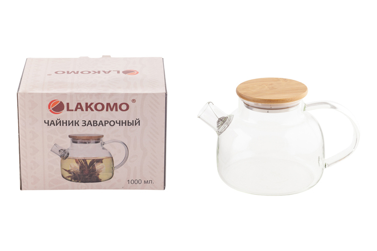 Чайник заварочный с бамбуковой крышкой 1000мл, в п.у.