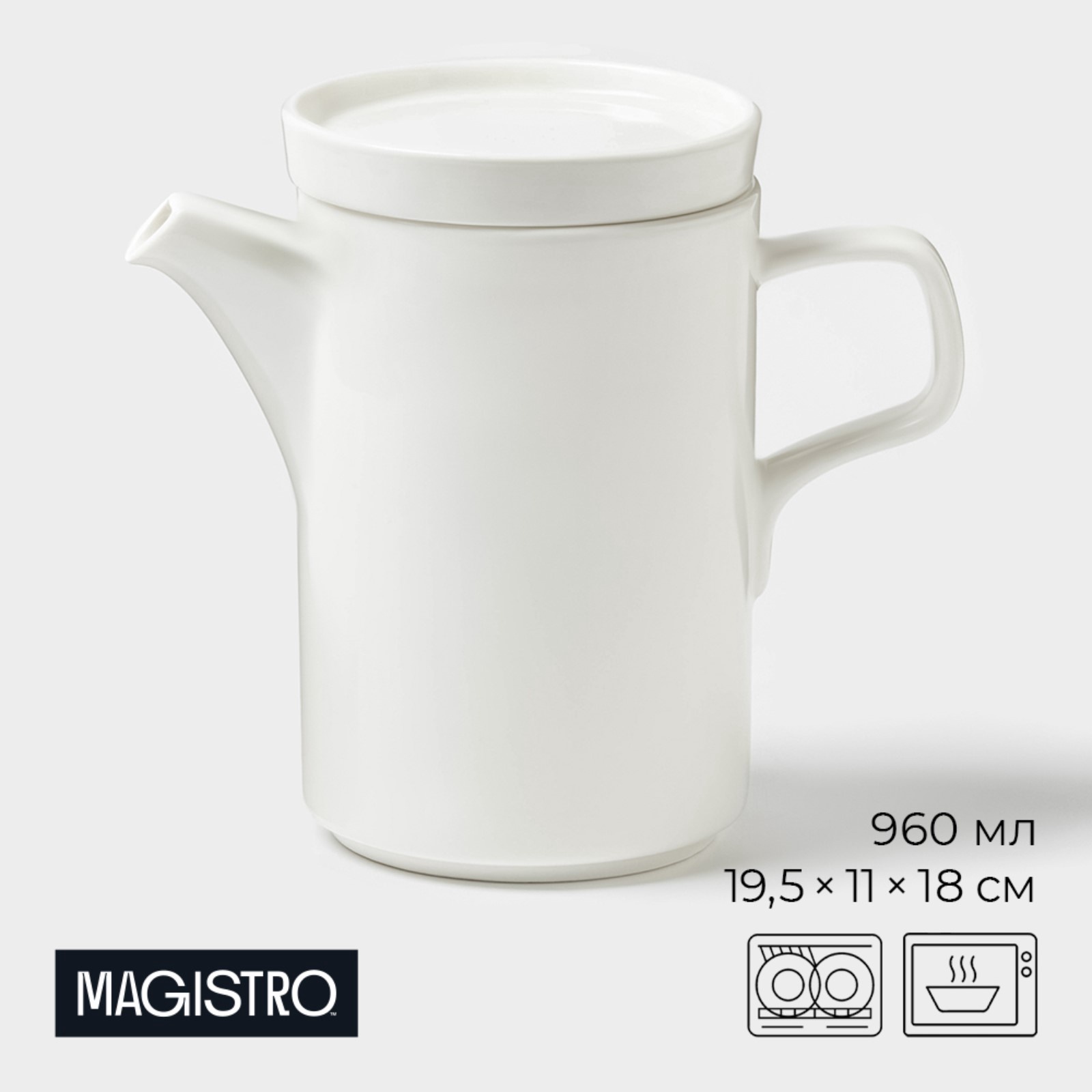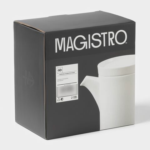 Заварочный чайник Magistro “Modern” – это идеальное сочетание элегантности и функциональности. Изготовленный из тончайшего фарфора, он обладает классическим белым цветом и гладкой поверхностью, что делает его идеальным для заваривания чая и украшения стола.