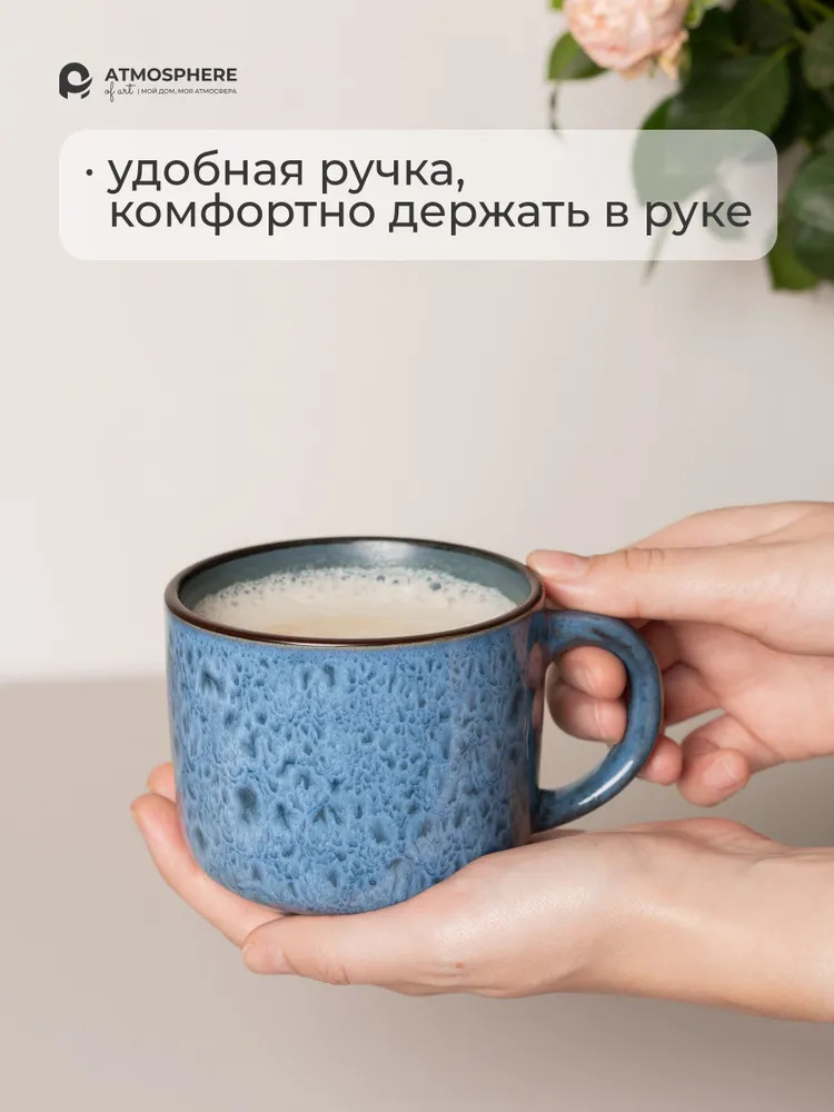 Набор керамических кружек стандартного объема глазурью с интересным узором. Набор в подарочной коробке.