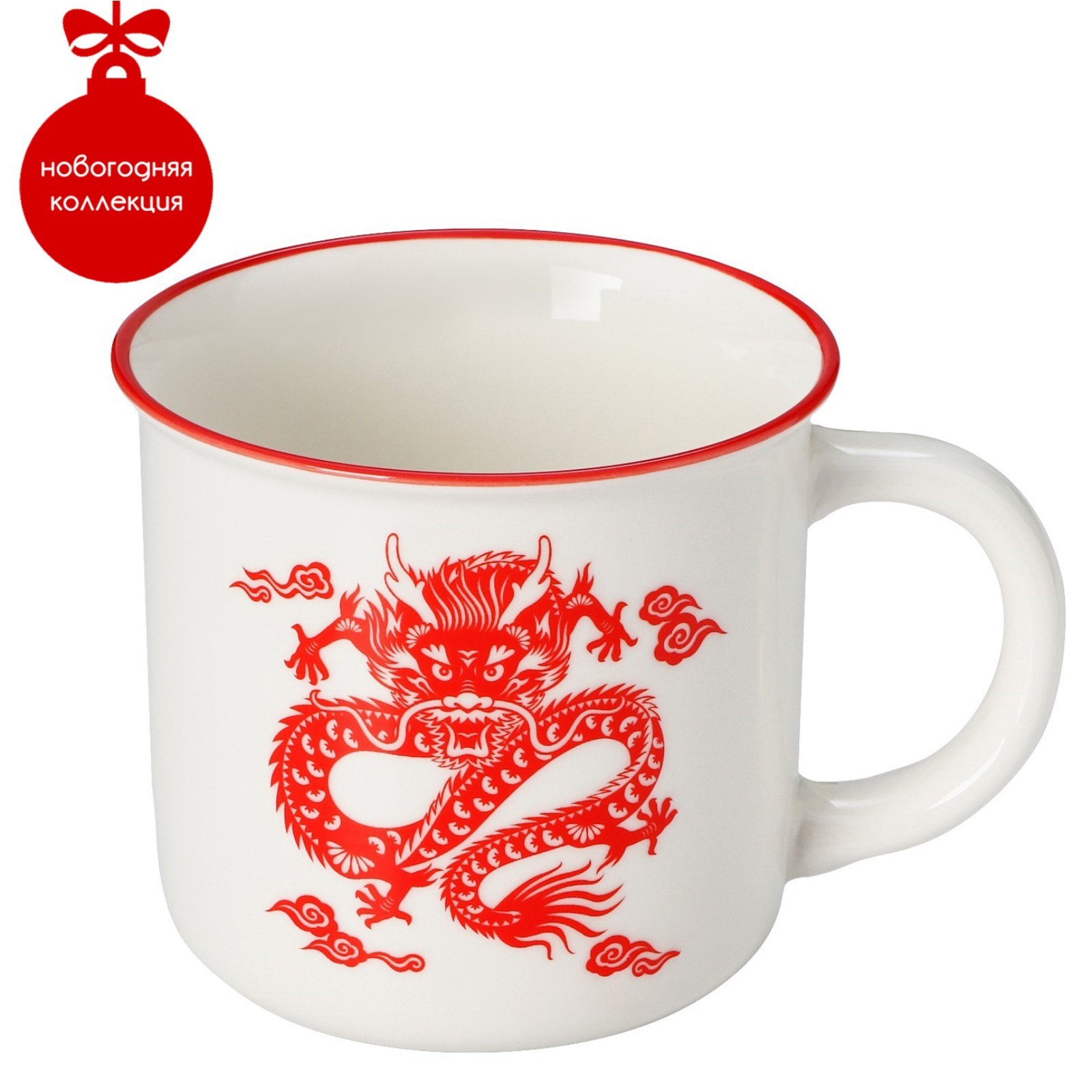 "Дракон", кружка фарфоровая, 380 мл, белая