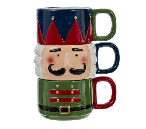 В собранном виде они формируют фигуру Щелкунчика: синий кивер, зеленый камзол и голова. Такой набор станет отличным подарком для любителей новогодних традиций и чаепитий. Он не только красиво выглядит, но и практичен, потому что каждая кружка может использоваться по отдельности. Набор упакован в элегантную картонную коробку.