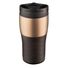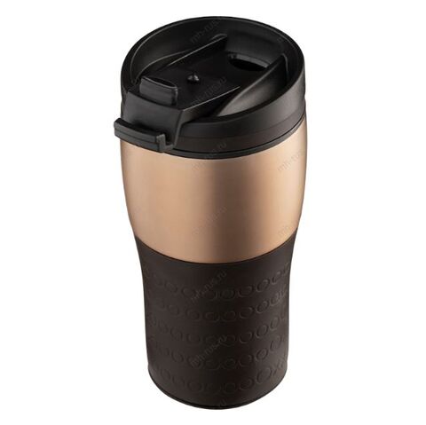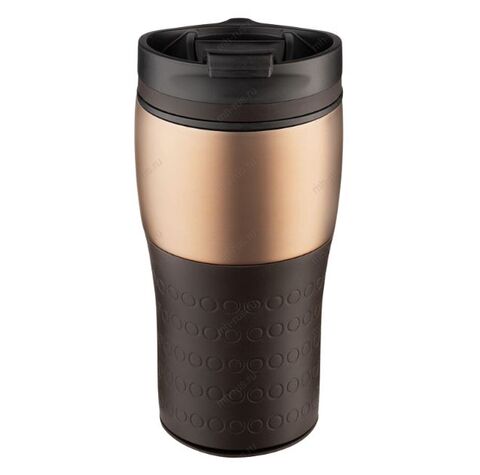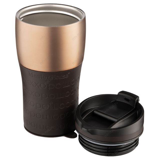 Термокружка из нержавеющей стали 18/10. Надежный корпус. Нержавеющая сталь 18/10 предотвращает коррозию. Медное покрытие сохраняет температуру. Вакуум максимально препятствует теплоотдаче. Через 5 часов температура горячего напитка не менее 50°С (тестирование проводилось при t воды 96°С и воздуха 21°С). Крышка герметично закрывается, фиксируется при питье, легко моется. Присоска на дне предотвращает опрокидывание. Идеальна для путешествий в поезде. Гарантия 1 год.