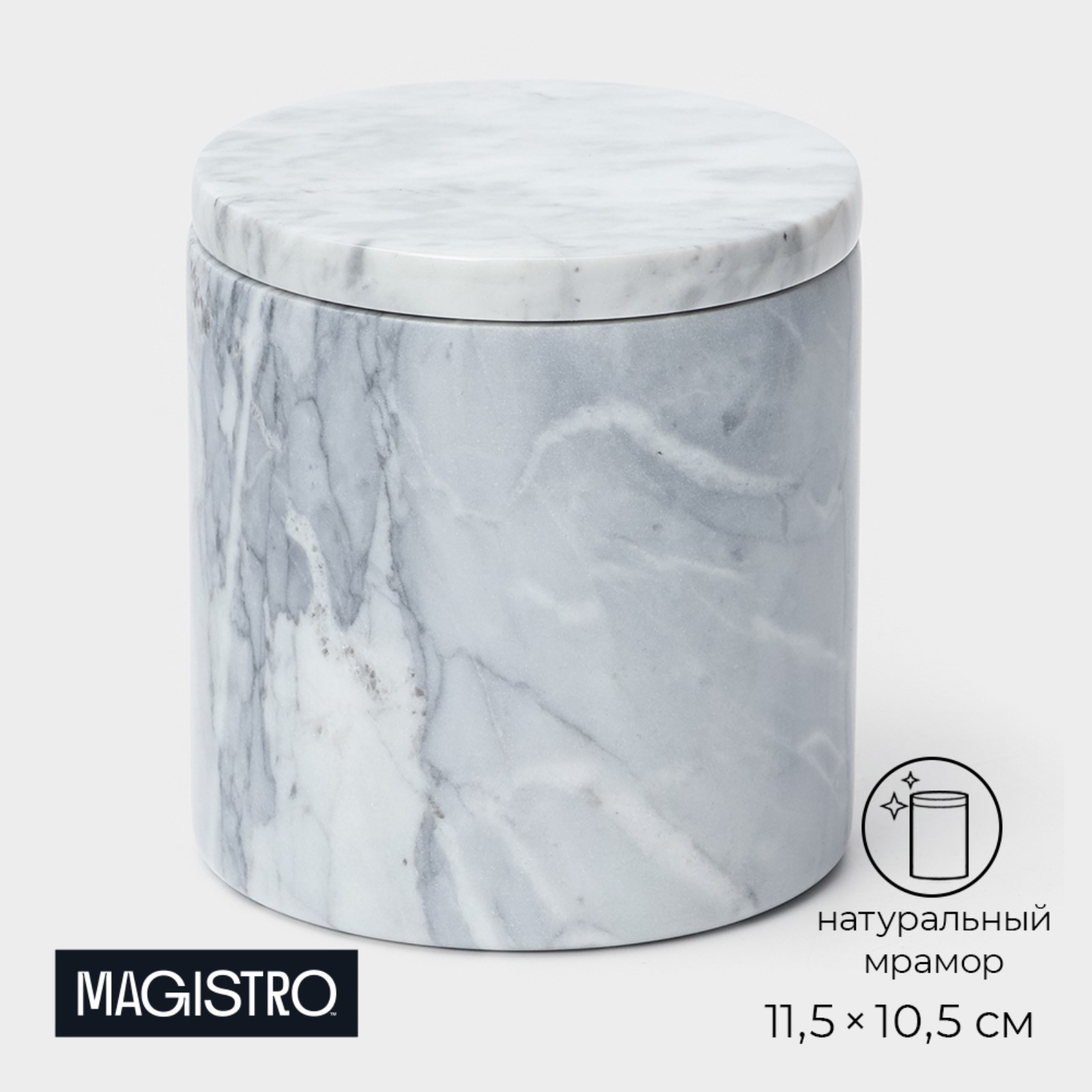 Изготовленная из натурального мрамора, ёмкость сохраняет естественный вкус и запах сыпучих продуктов. Мрамор - прочный и долговечный материал, который прекрасно справляется с сохранением свежести и аромата специй.