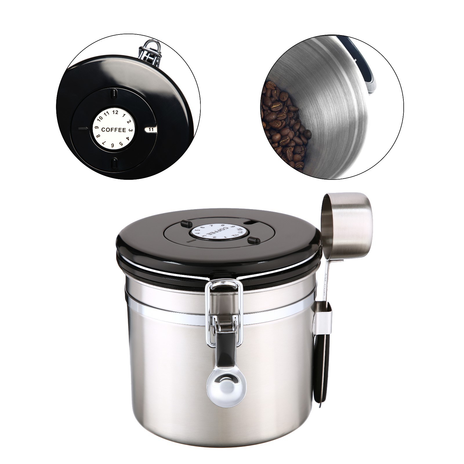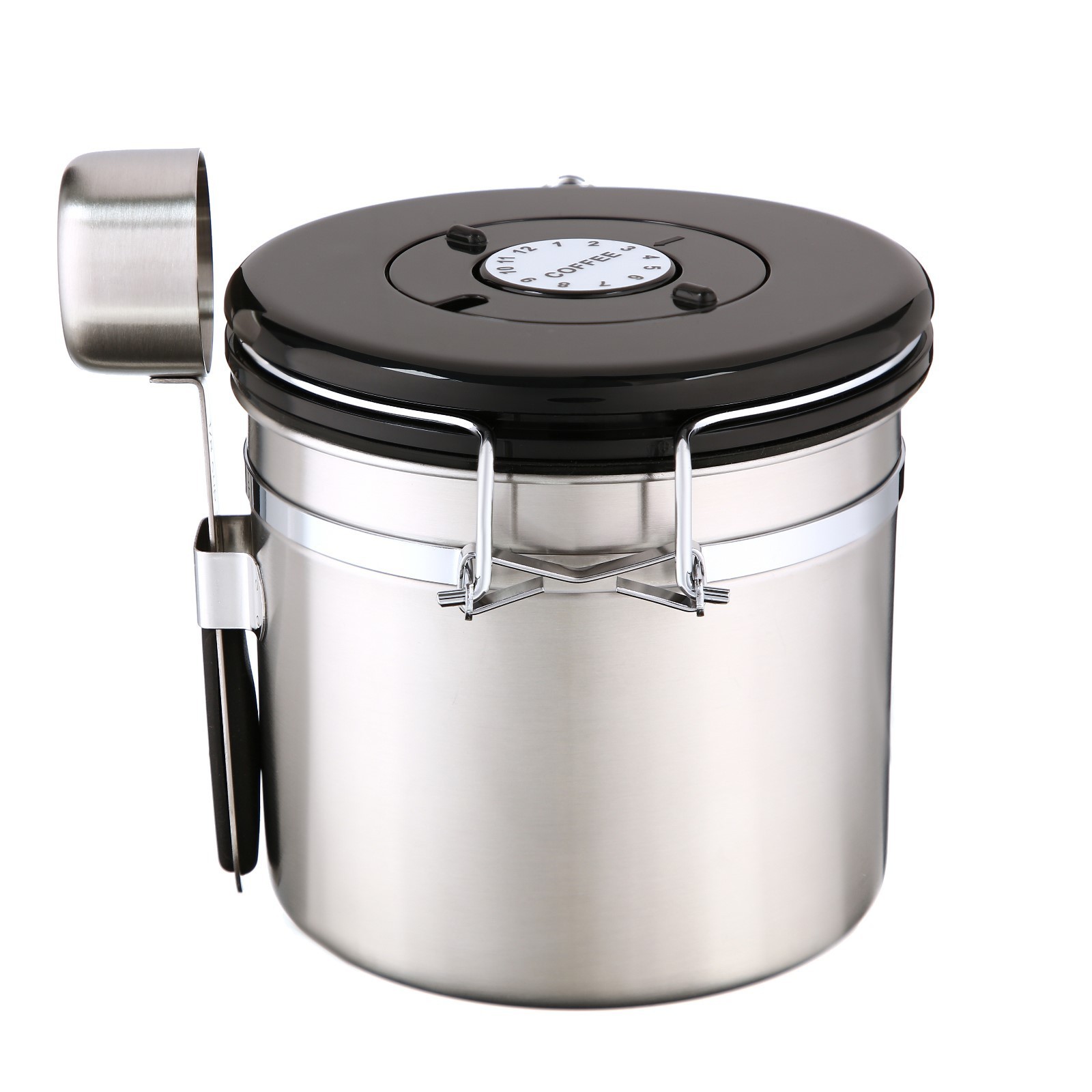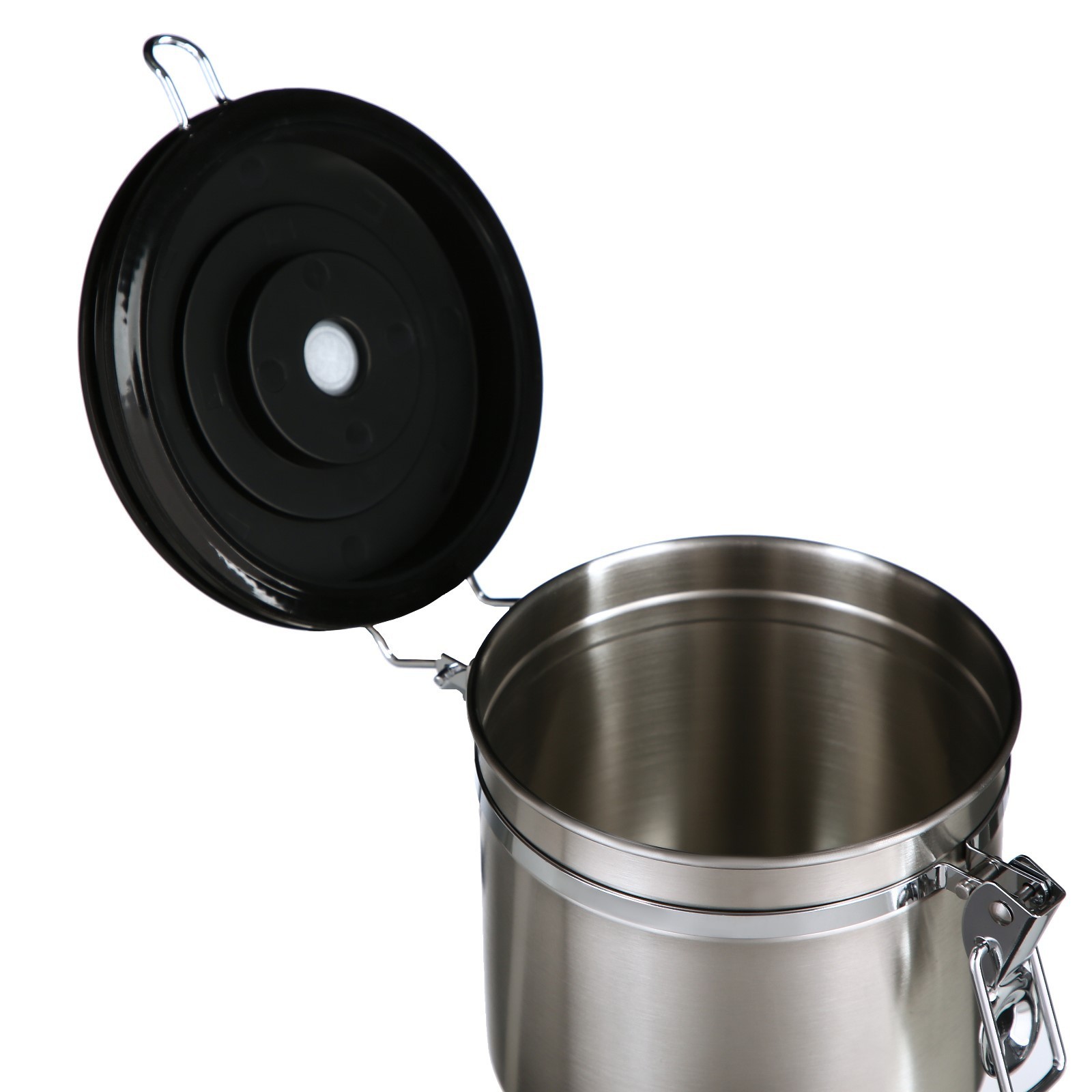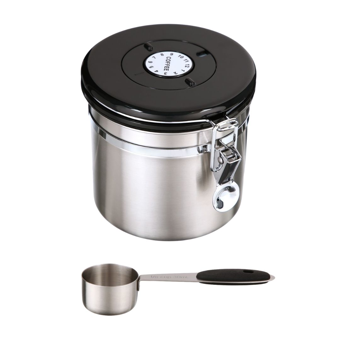 - Благодаря герметичной крышке с силиконовым уплотнителем, плотно закрывающейся на удобный эксцентриковый зажим, кофе и другие сыпучие продукты не испортятся раньше срока;