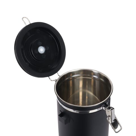 - Благодаря герметичной крышке с силиконовым уплотнителем, плотно закрывающейся на удобный эксцентриковый зажим, кофе и другие сыпучие продукты не испортятся раньше срока;